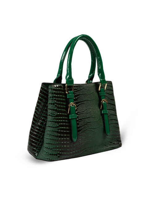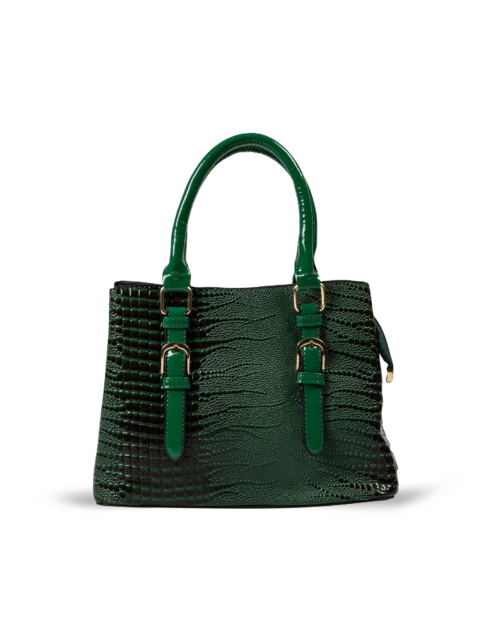 FIRSTGLOW Luxe Textured Leatherette Handbag with Dual Handles – Emerald Mist Finish