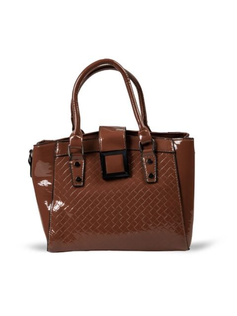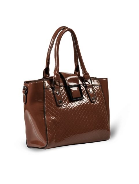 FIRSTGLOW Luxe Textured Leatherette Handbag with Dual Handles – Burnished Cocoa Shine