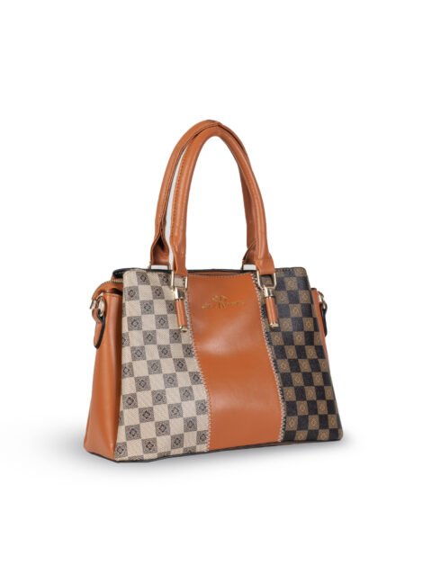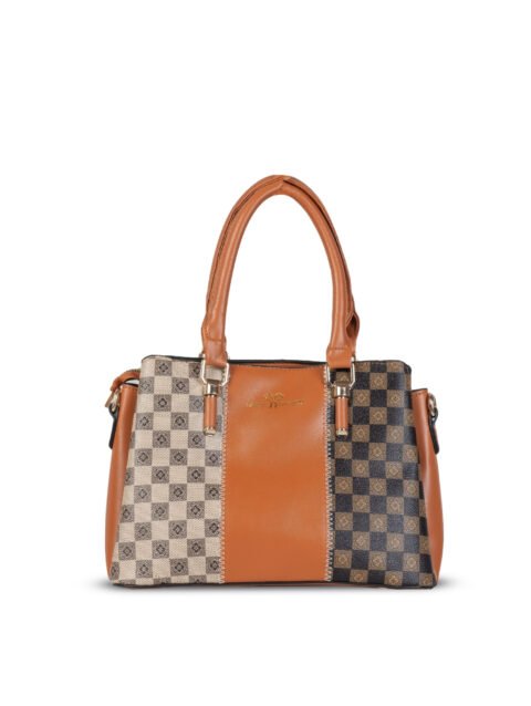 FIRSTGLOW Multi-Tone Textured Leatherette Handbag with Dual Handles – Slate Grey, Warm Tan & Rustic Brown