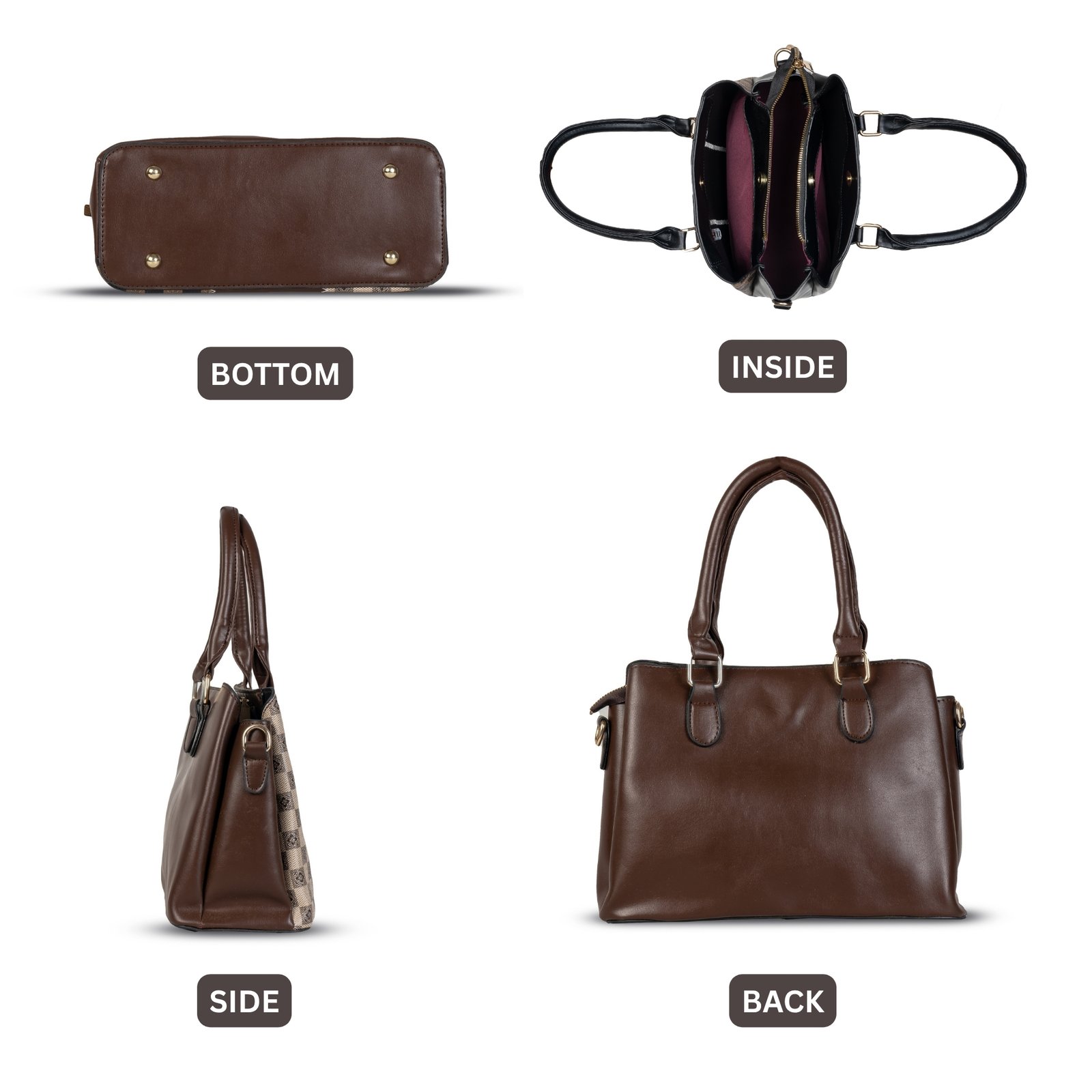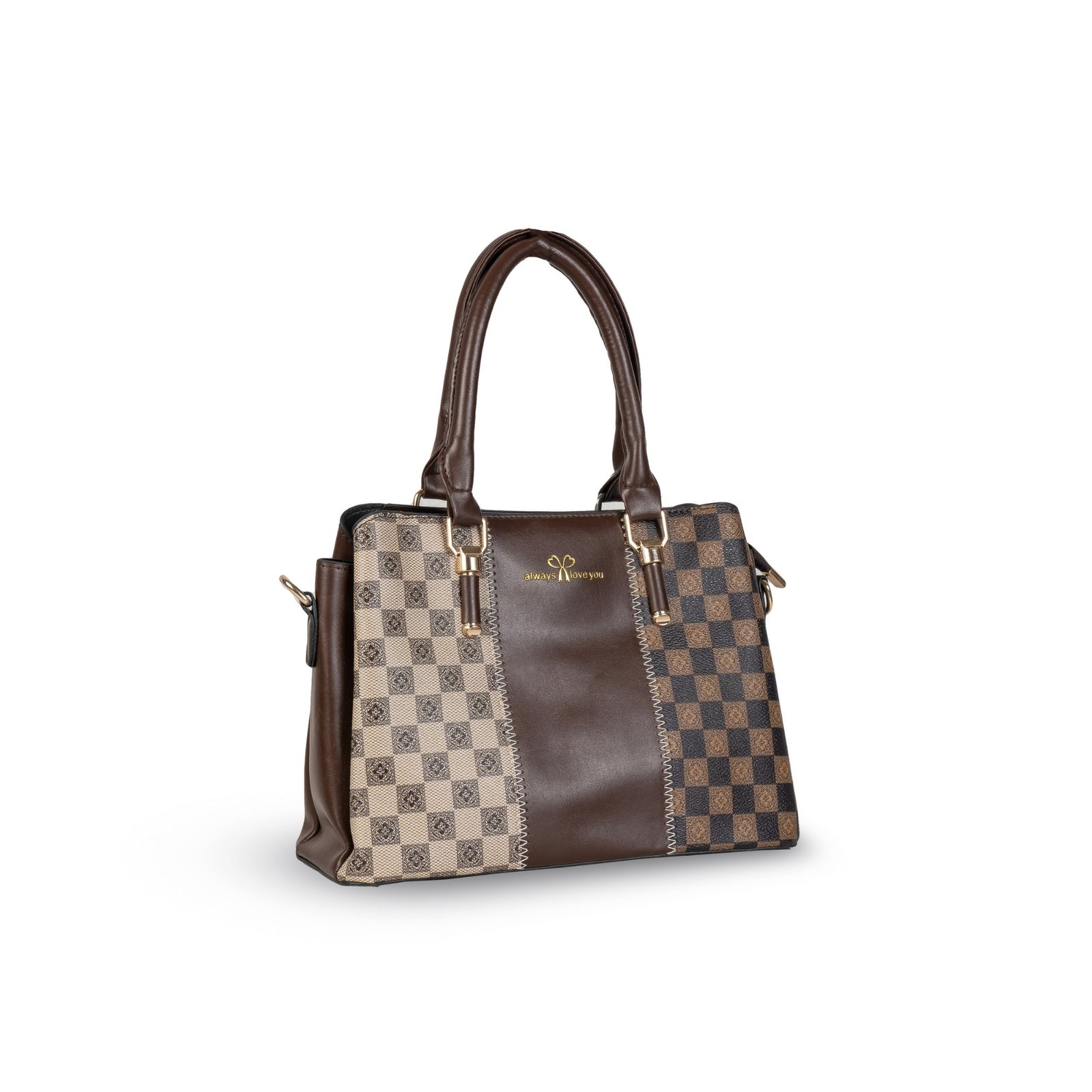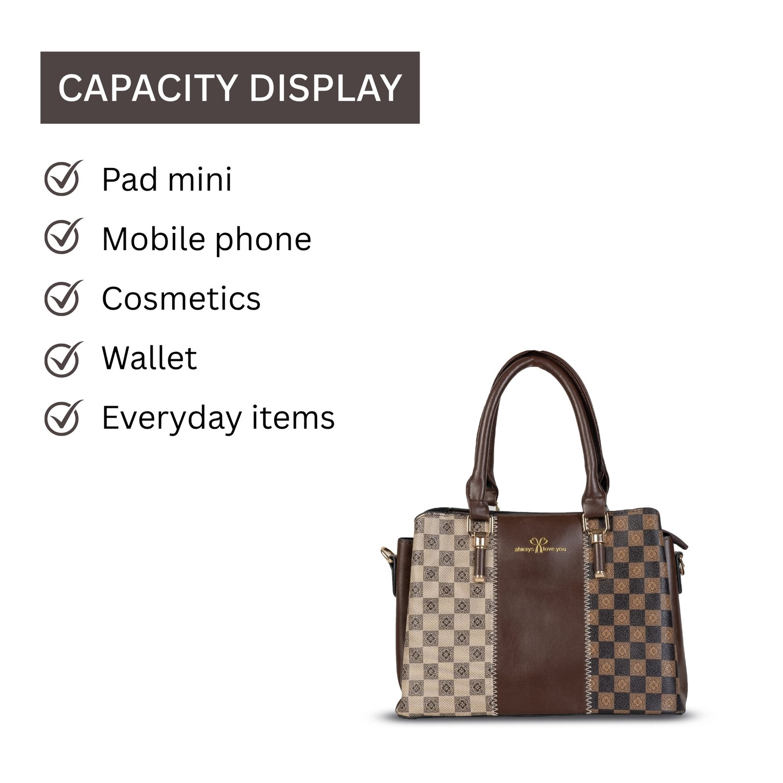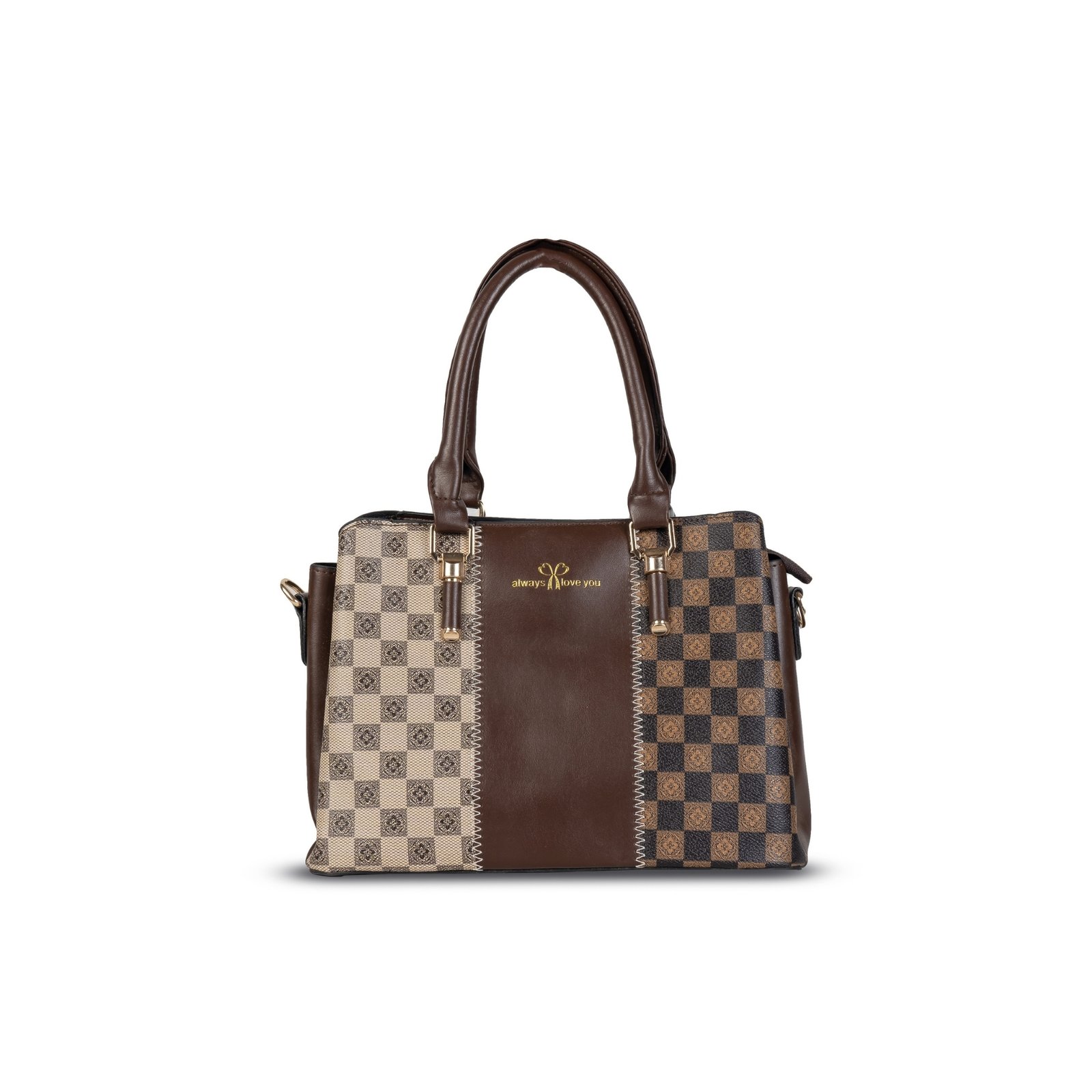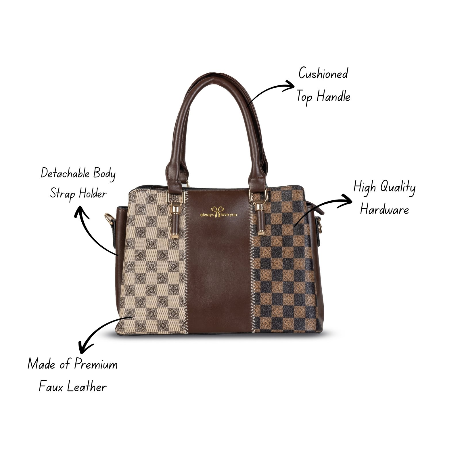FIRSTGLOW Classic Checkered Dual-Tone Handbag with Textured Finish – Chocolate Brown & Beige