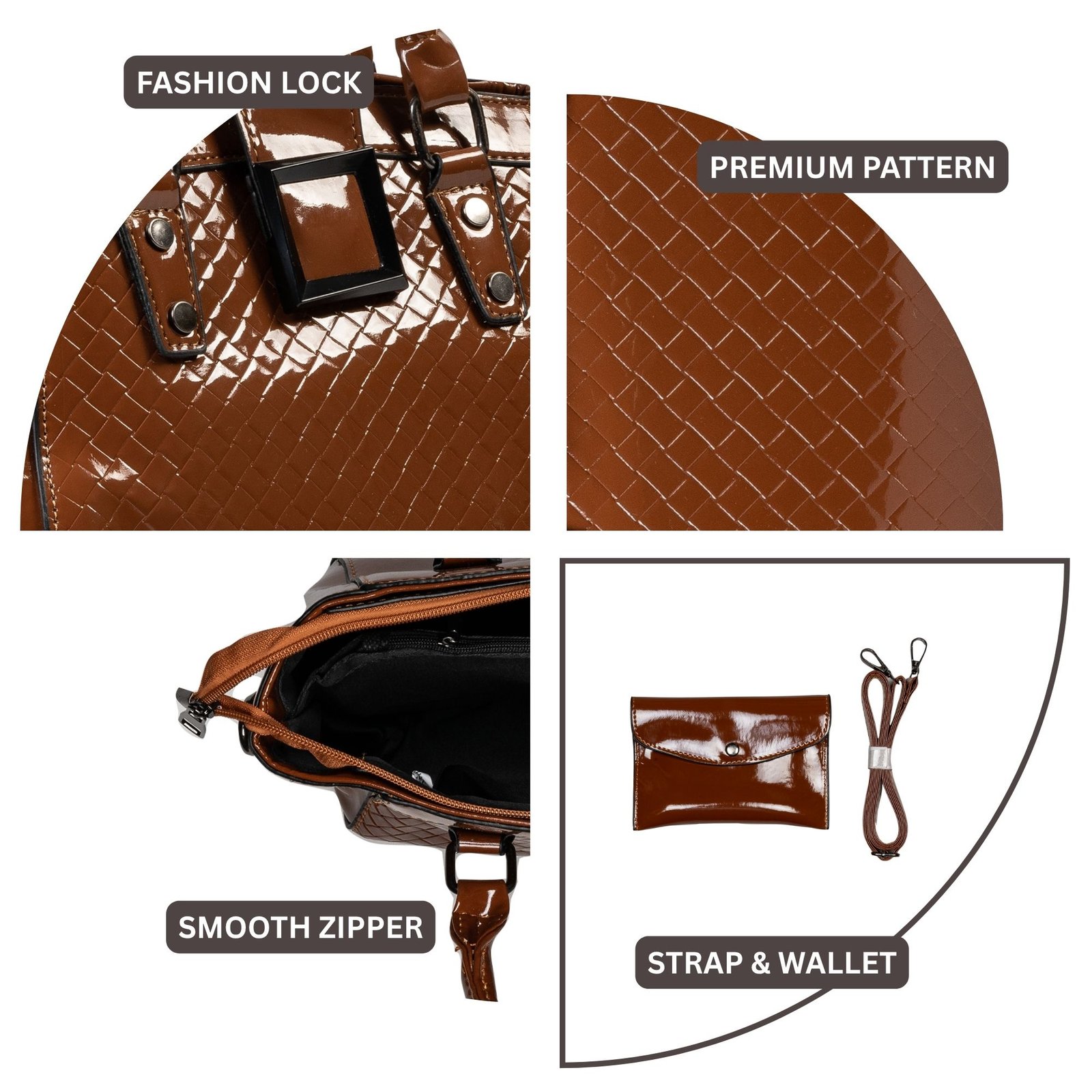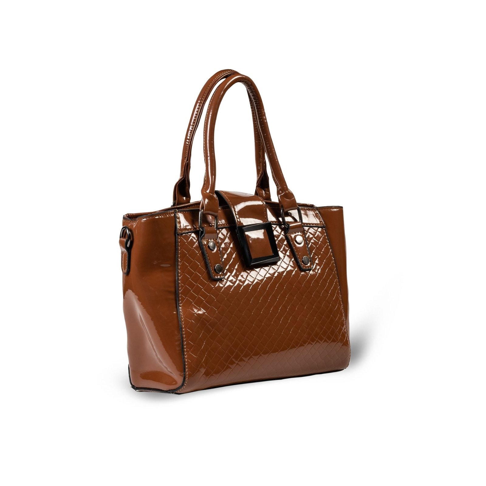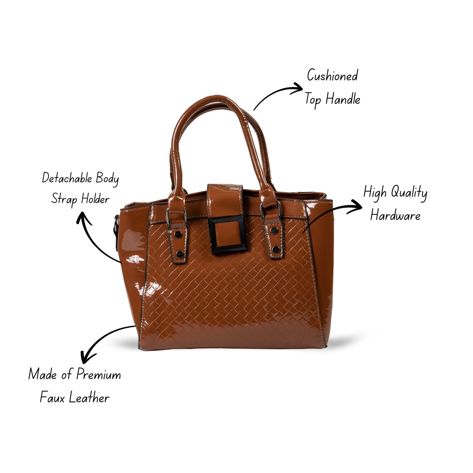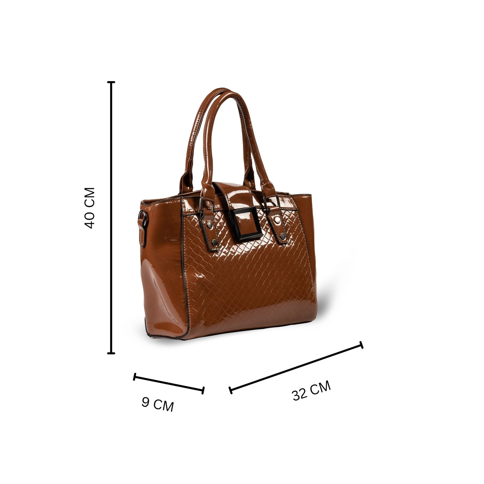 FIRSTGLOW Classic Textured Leatherette Handbag with Dual Handles – Oakwood Brown Edition