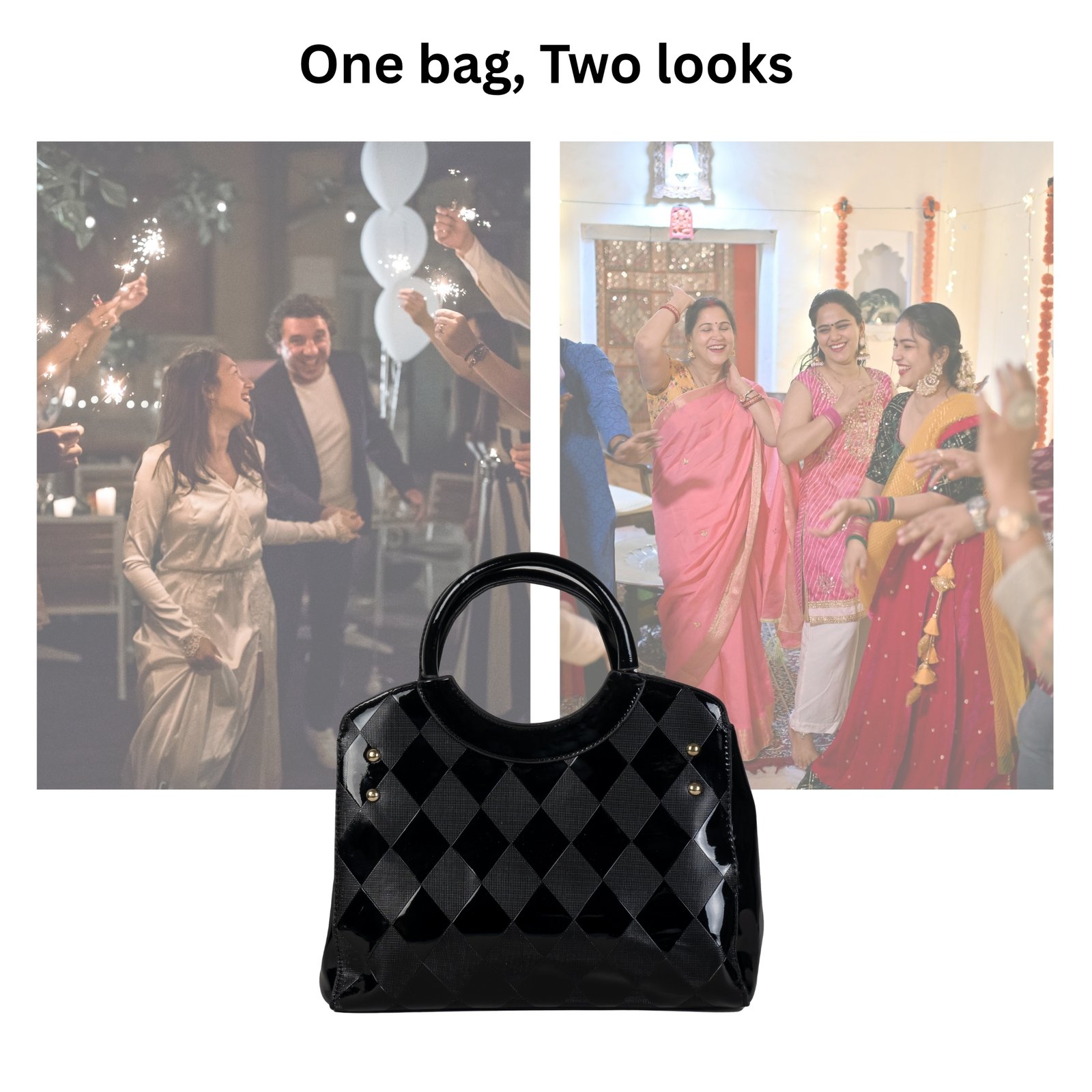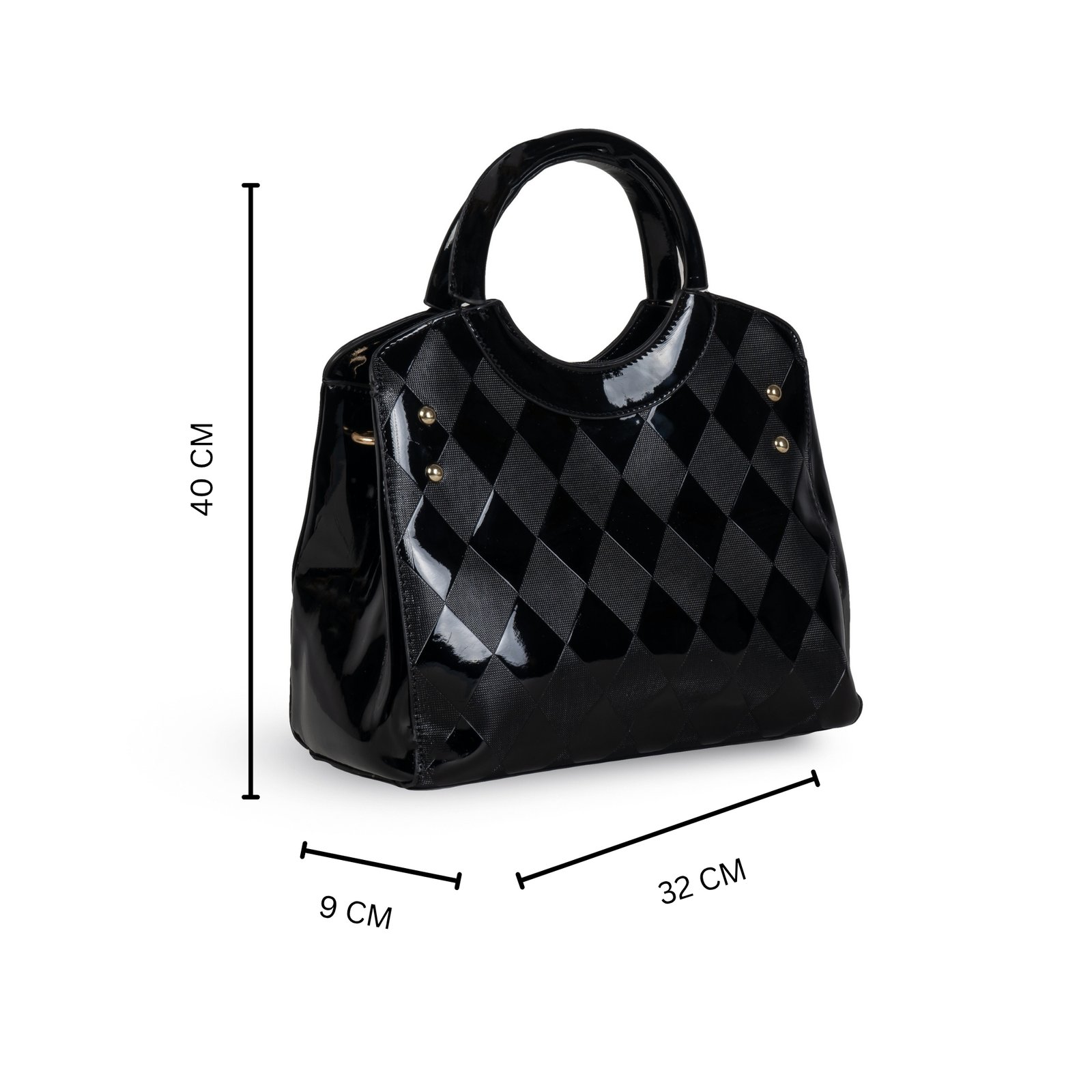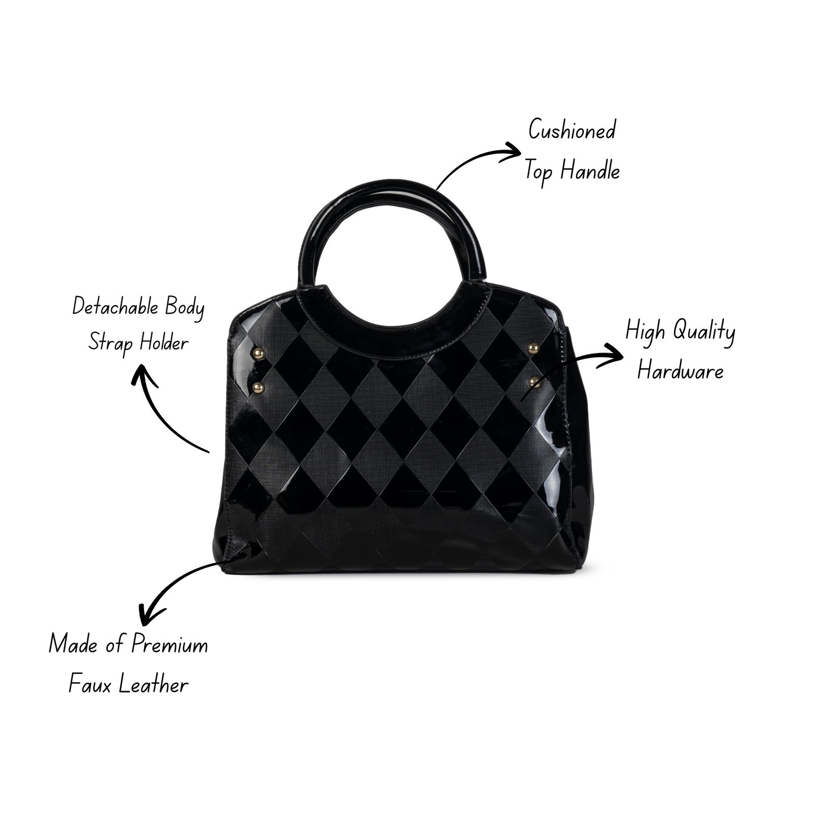 FIRSTGLOW Classic Textured Leatherette Handbag with Dual Handles – Shimmering Black
