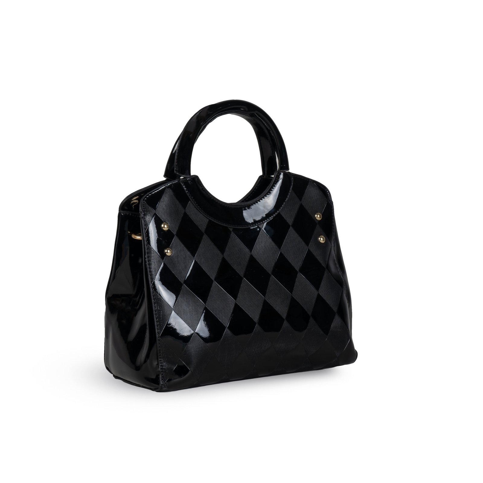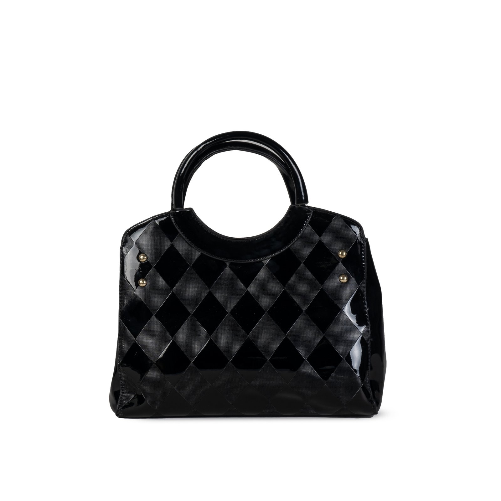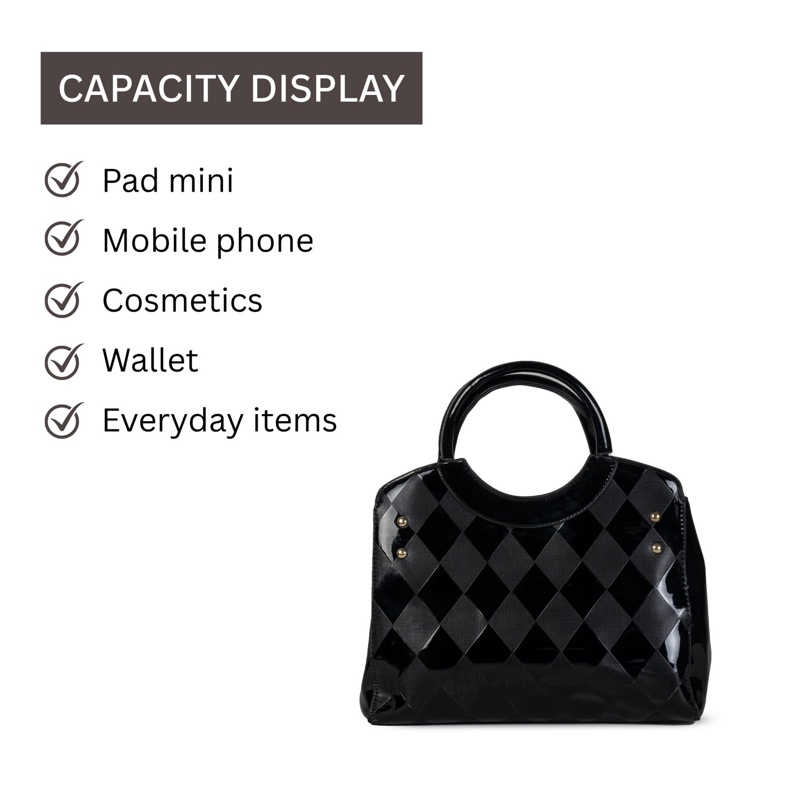 FIRSTGLOW Classic Textured Leatherette Handbag with Dual Handles – Shimmering Black