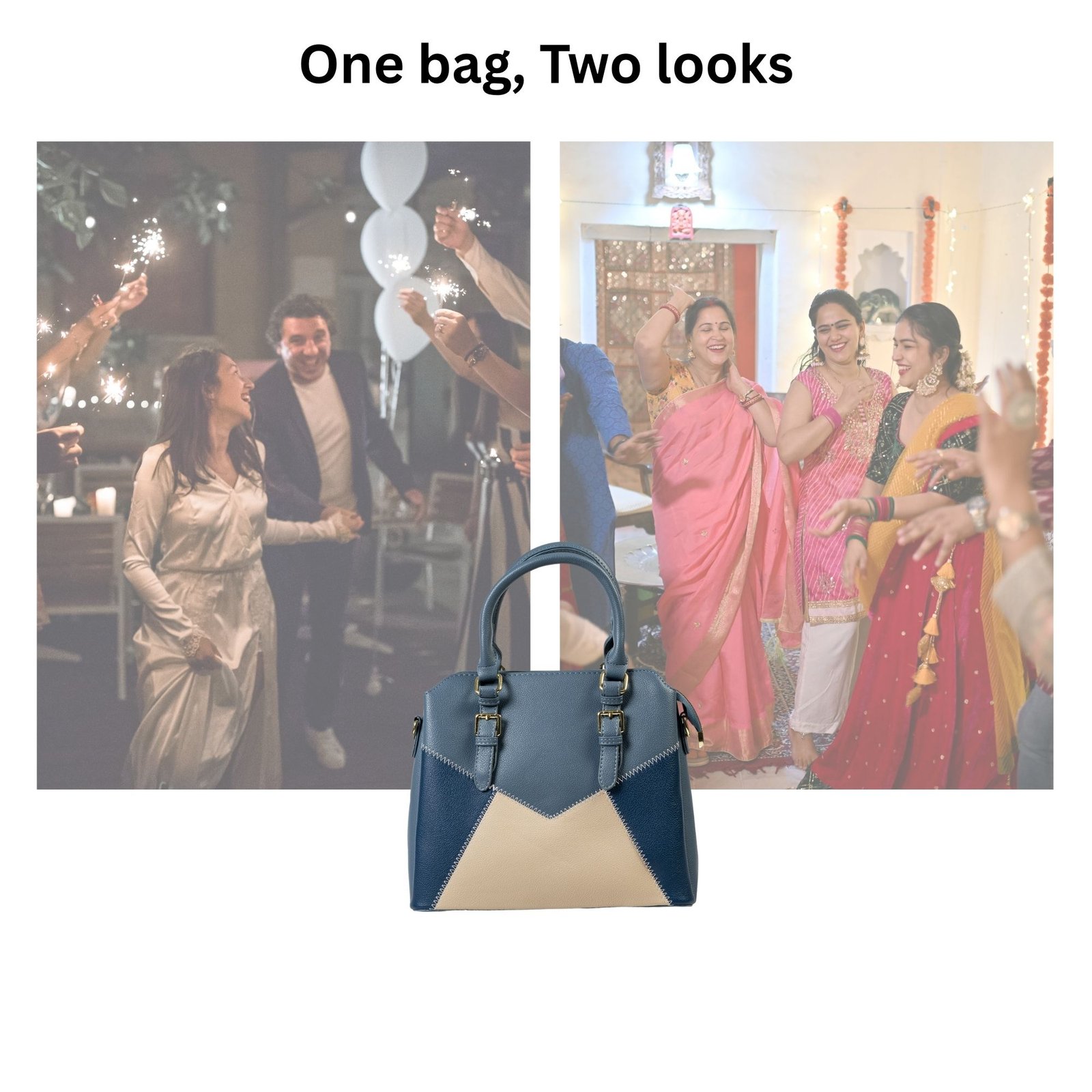 FIRSTGLOW Dual-Tone Executive Leatherette Handbag – Ocean Mist & Sand Beige