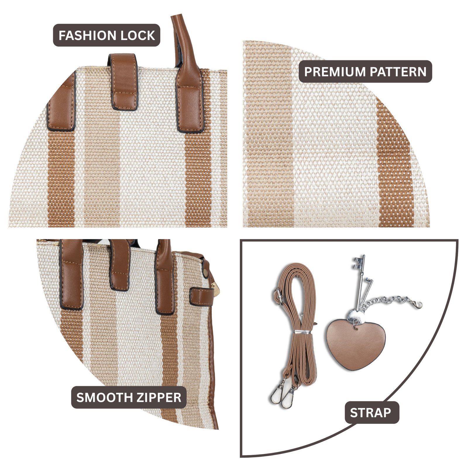 Closure: Secure zip closure with stylish front strap