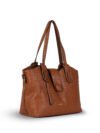 The structured design and durable dual handles ensure comfortable carrying, while the spacious interior offers multiple organizer pockets to neatly store your essentials—phone, wallet, keys, and cosmetics. Accented with gold-tone hardware and a secure top zipper closure, this handbag is perfect for office, casual outings, and travel.