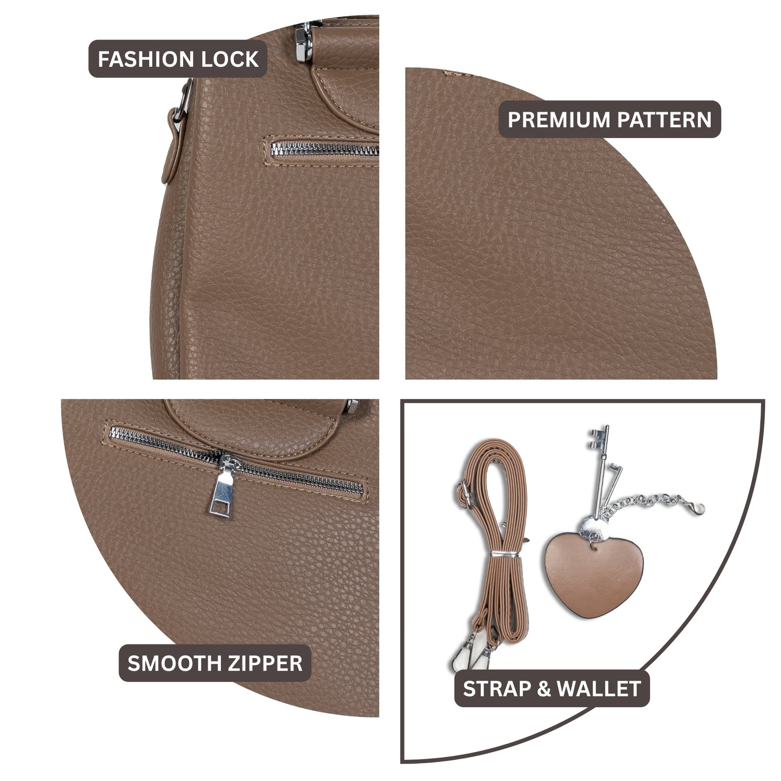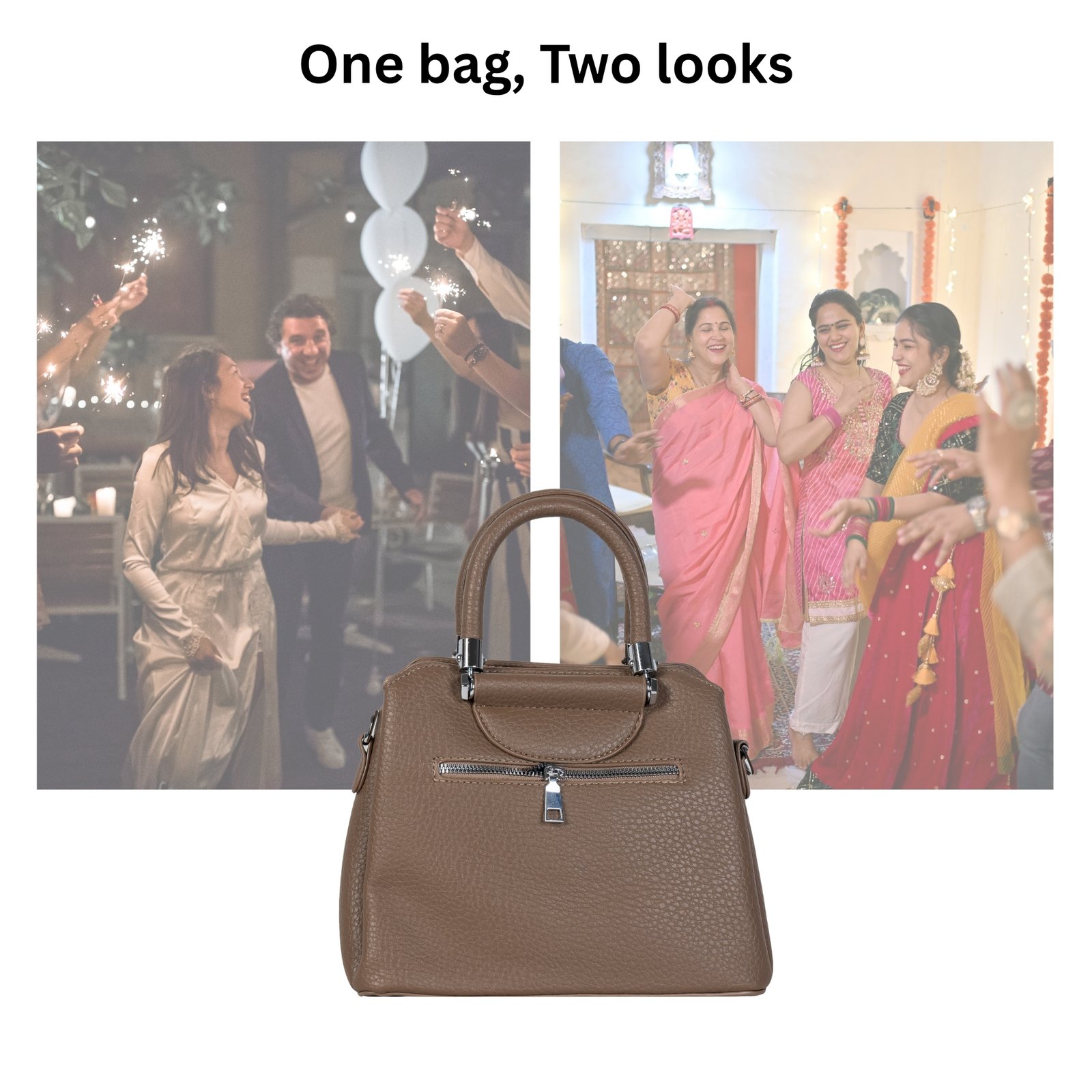 FIRSTGLOW Elegant Textured Faux Leather Handbag – Mocha Brown