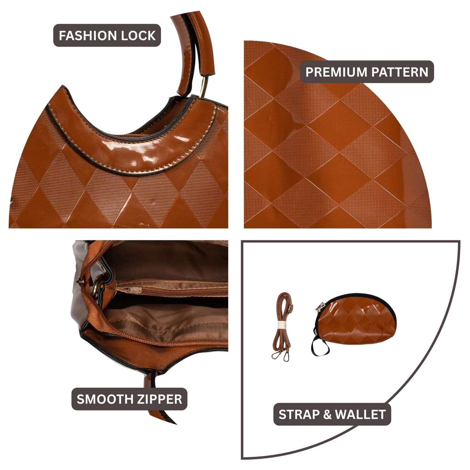 Finished with sleek metallic accents and a secure top zipper, this handbag is perfect for office wear, casual outings, travel, and daily use. A versatile piece that enhances your style effortlessly.