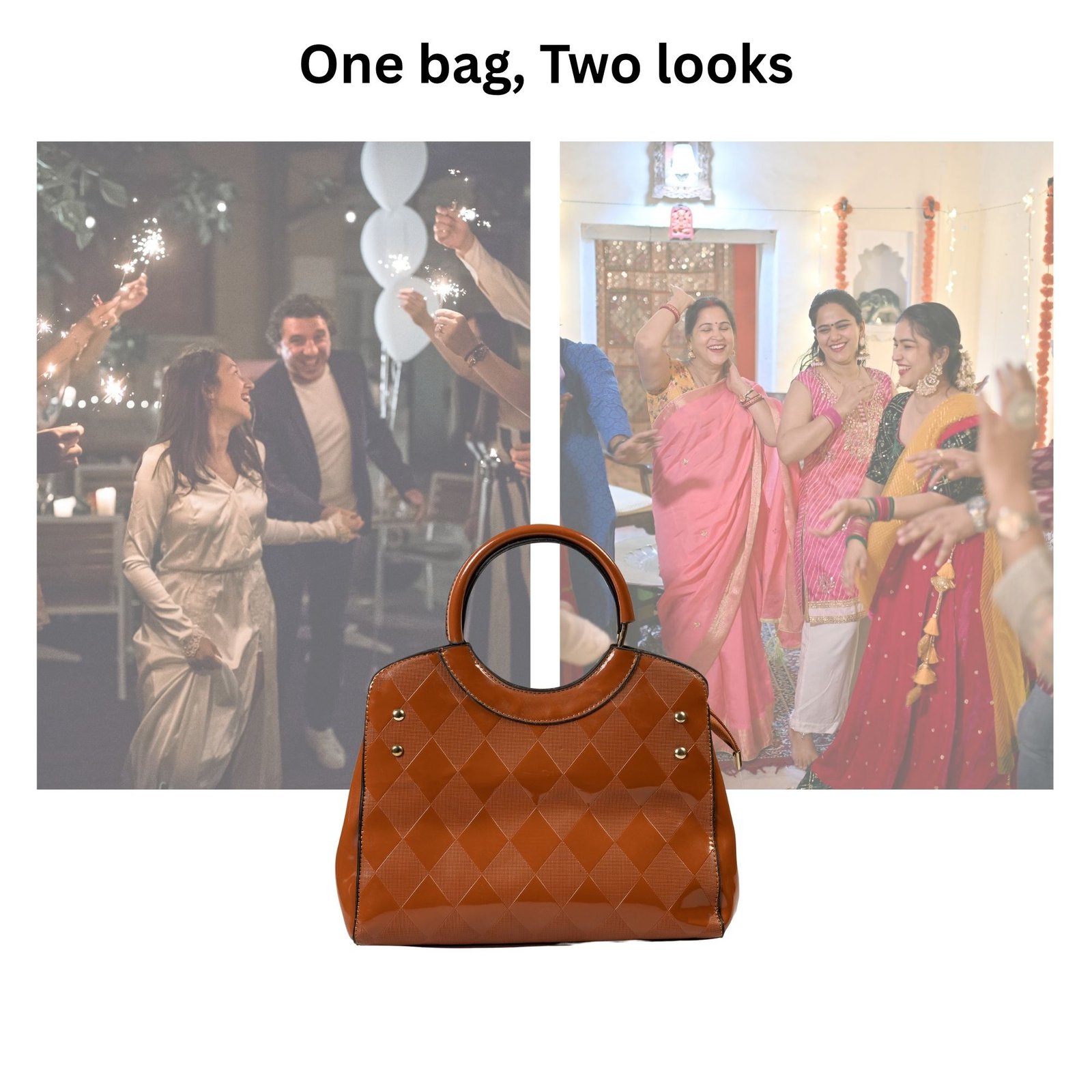 The warm Sunset Peach Glow tone adds a graceful charm, while the sturdy dual handles provide comfortable carry support throughout the day. The spacious interior includes multiple organizer pockets, allowing you to store your essentials—phone, cosmetics, wallet, and accessories—neatly and conveniently.