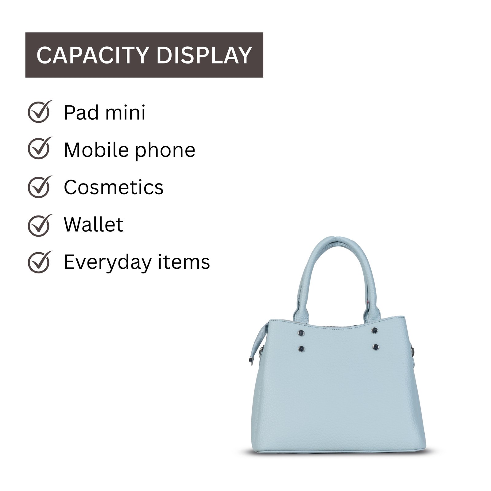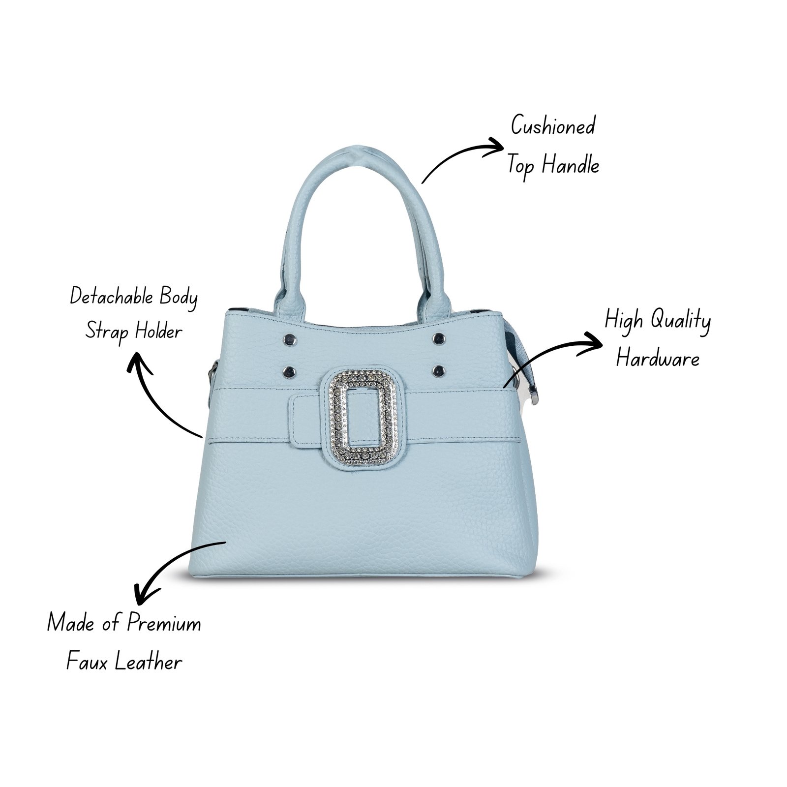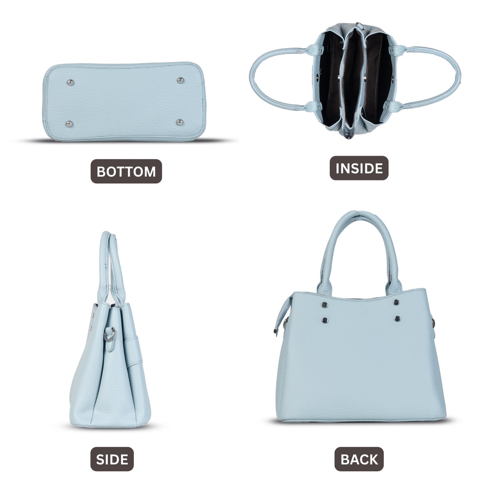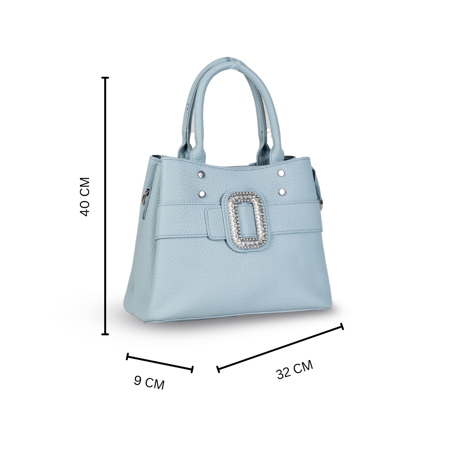 FIRSTGLOW Luxe Front-Embellished Textured Handbag with Dual Handles – Sky Light Blue