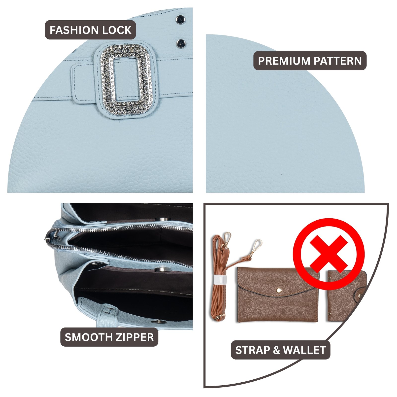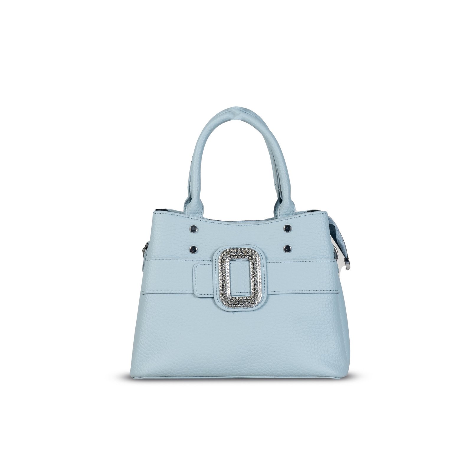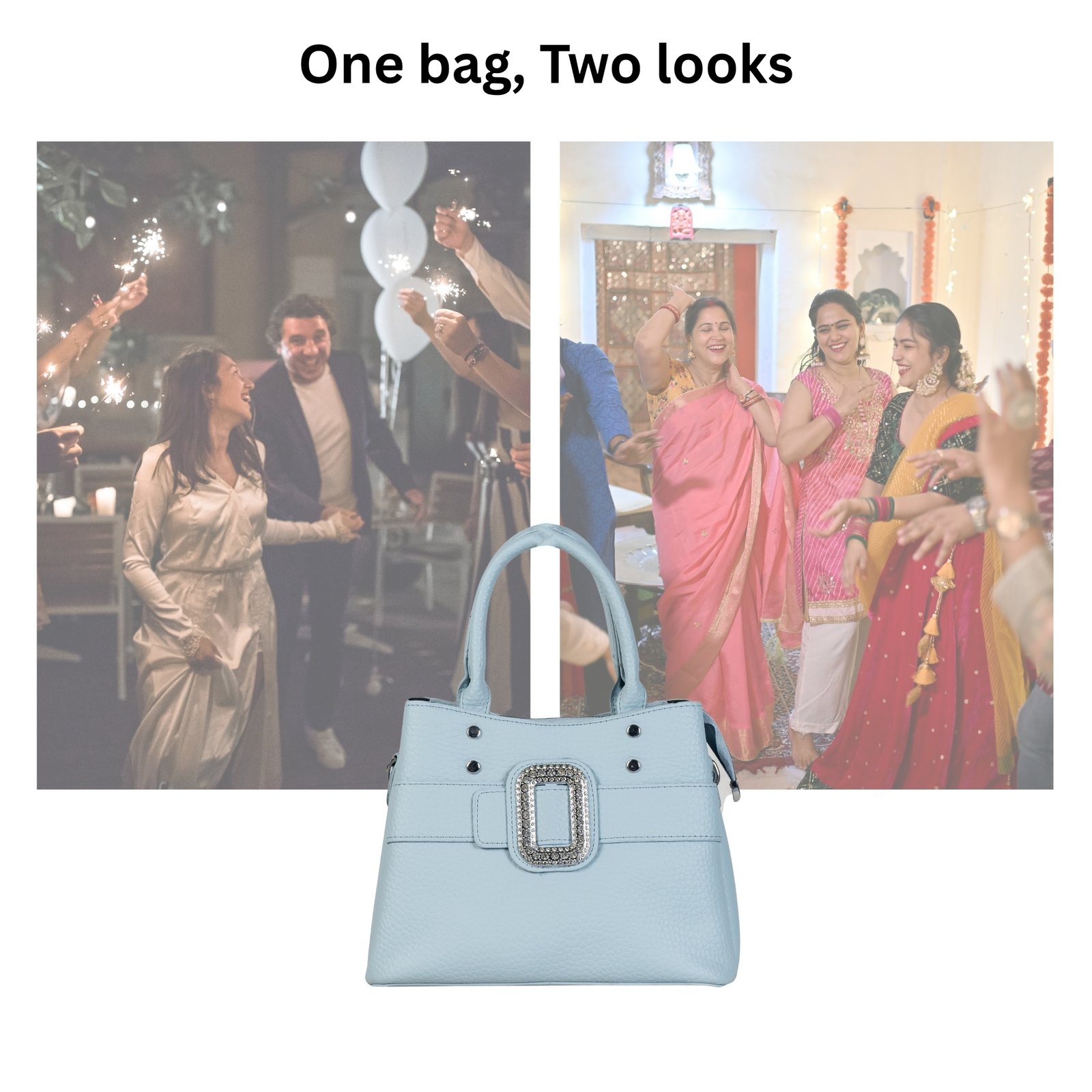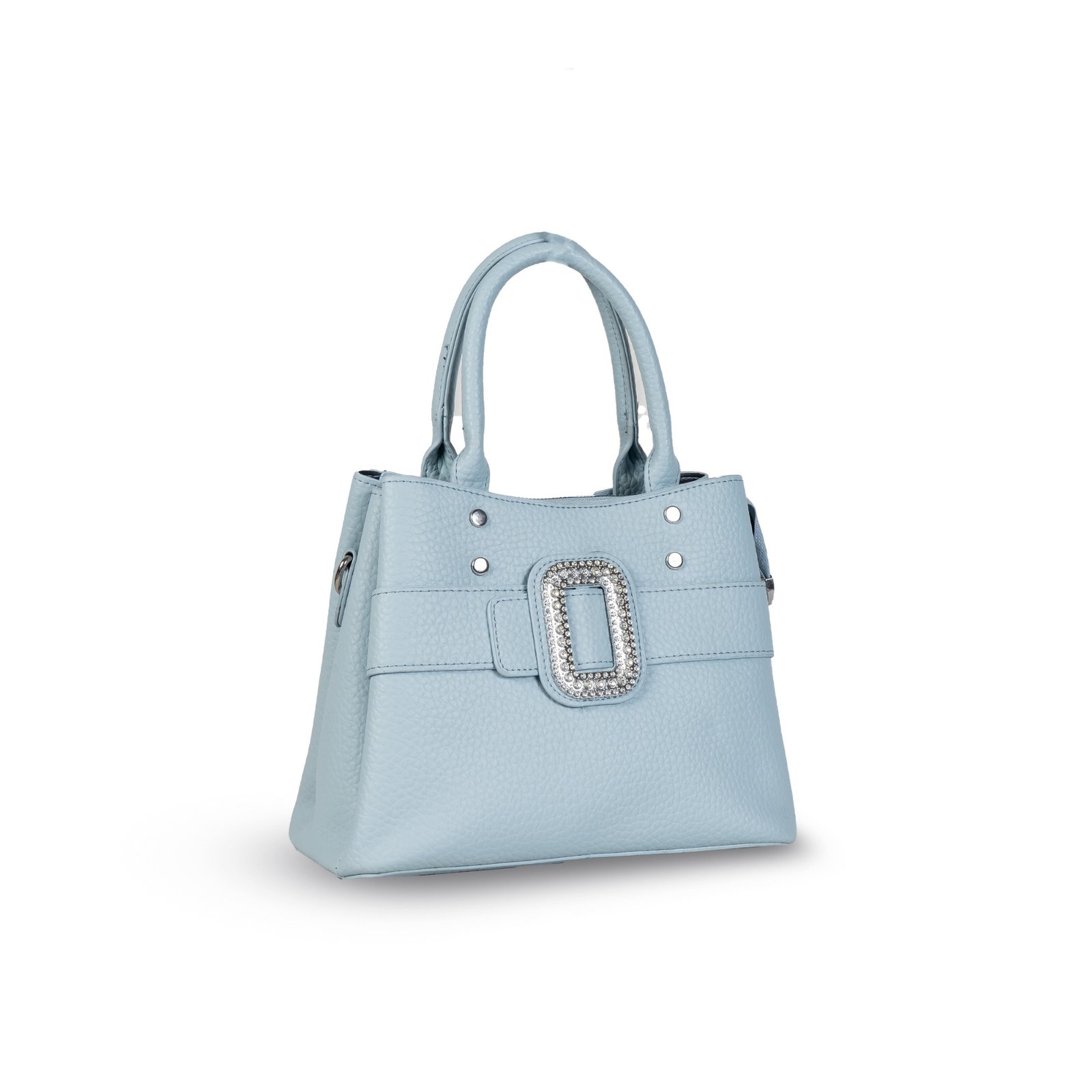 FIRSTGLOW Luxe Front-Embellished Textured Handbag with Dual Handles – Sky Light Blue