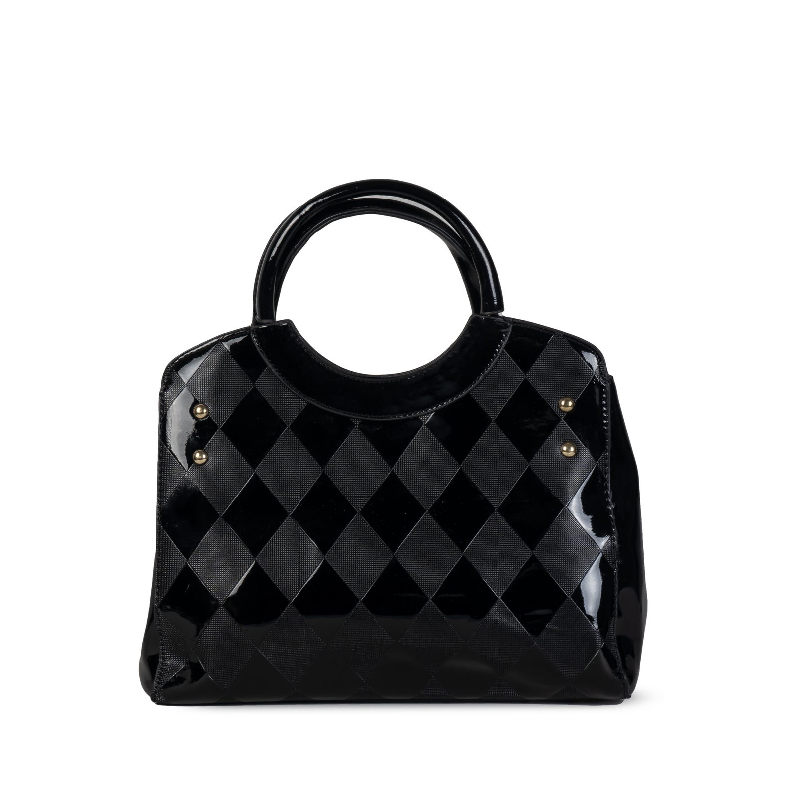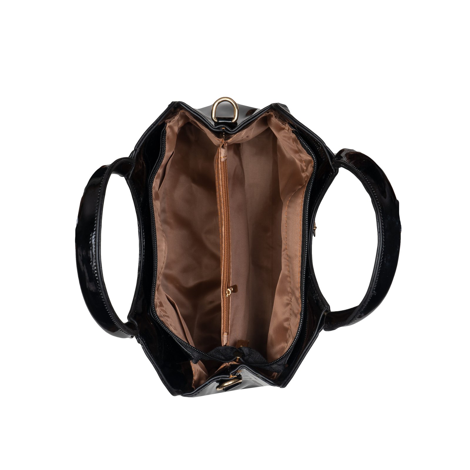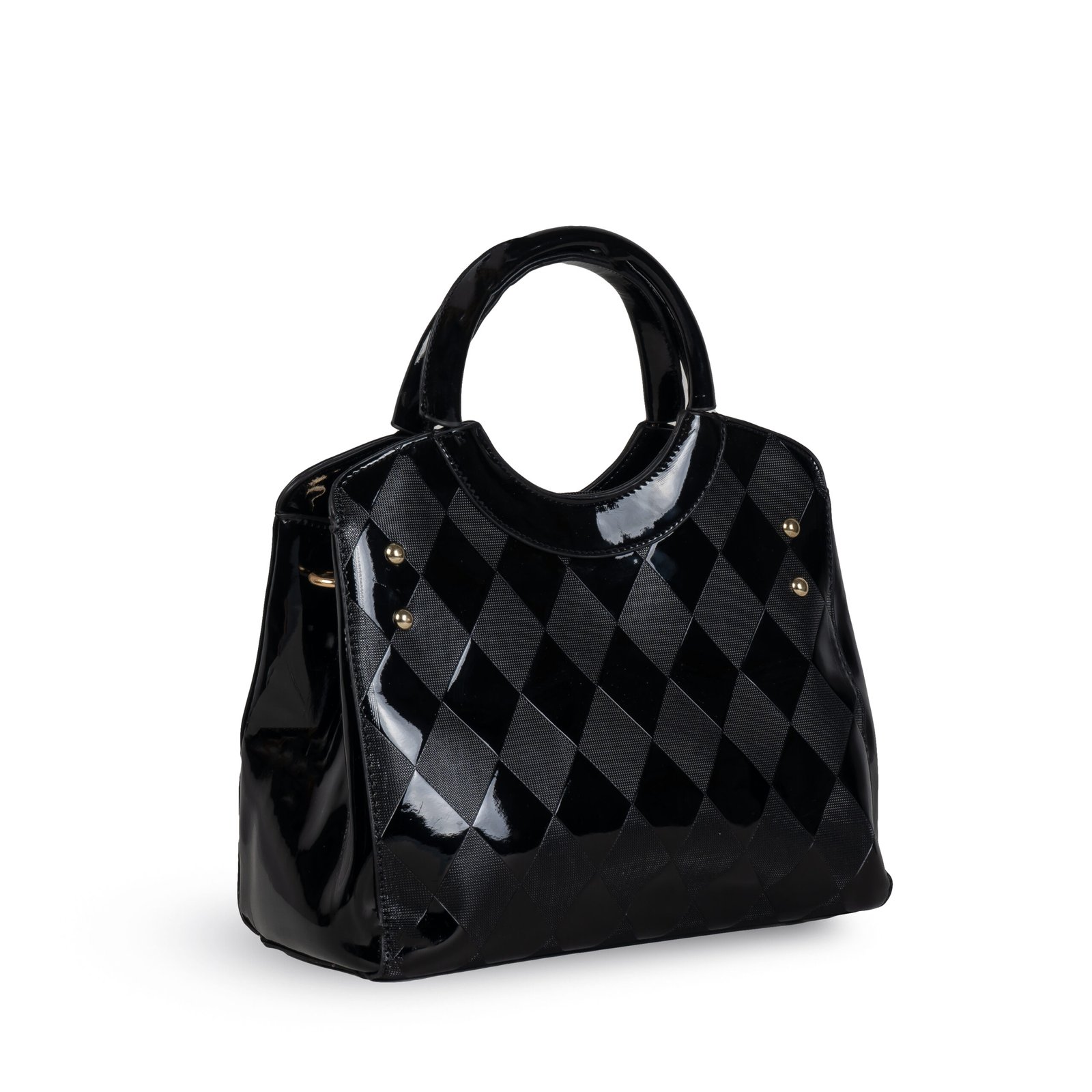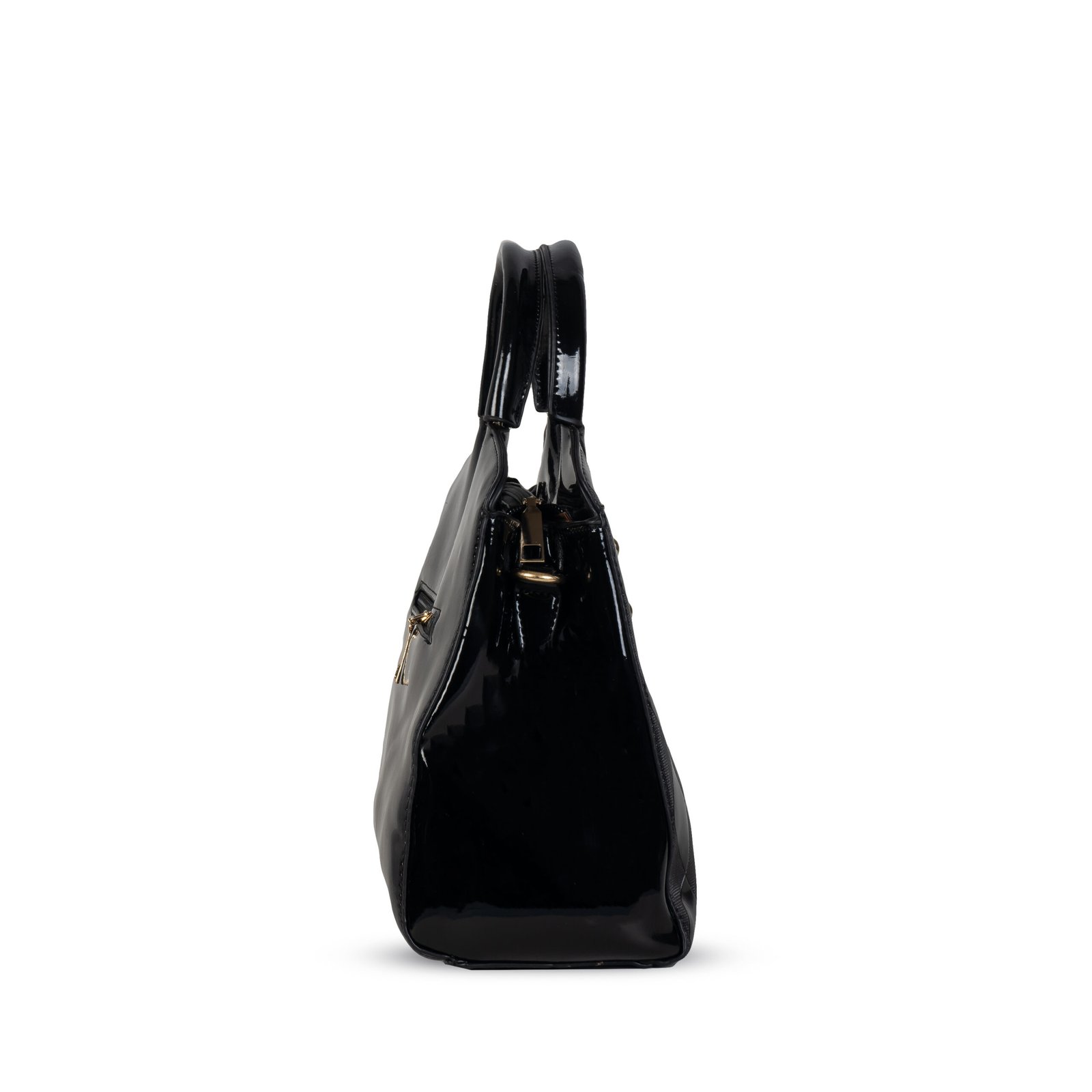 FIRSTGLOW Luxe Glossy Handbag with Dual Handles – Midnight Onyx