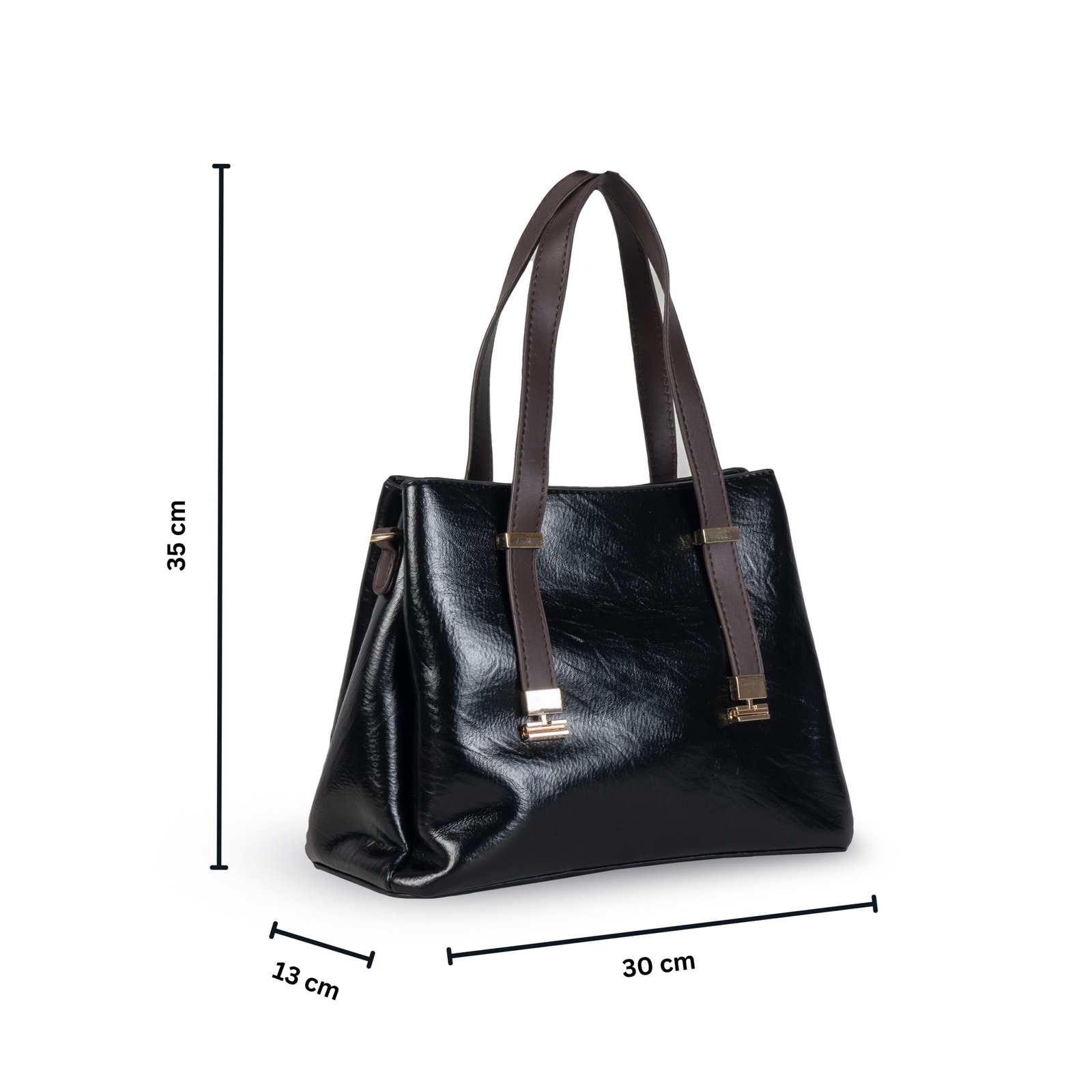 FIRSTGLOW Luxe Glossy Leatherette Handbag with Dual Handles – Midnight Shine