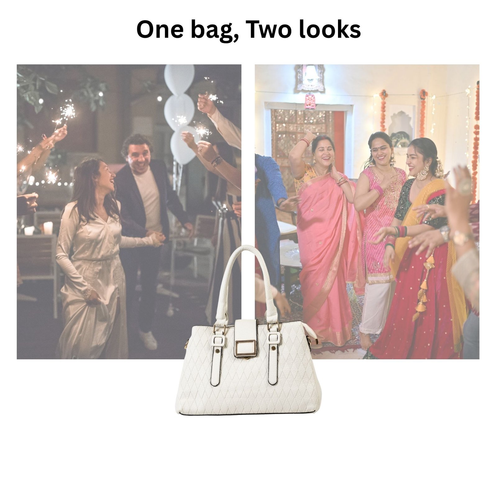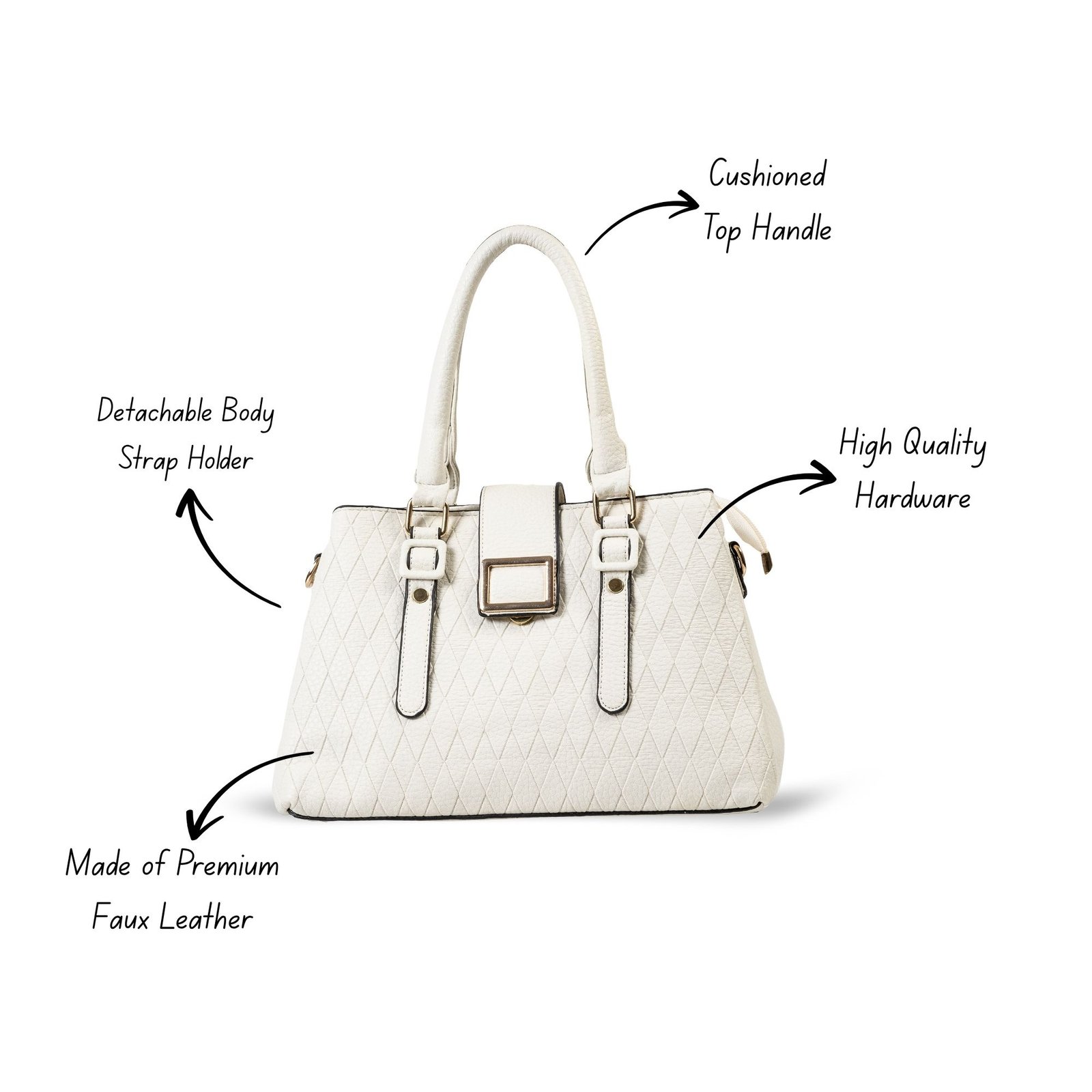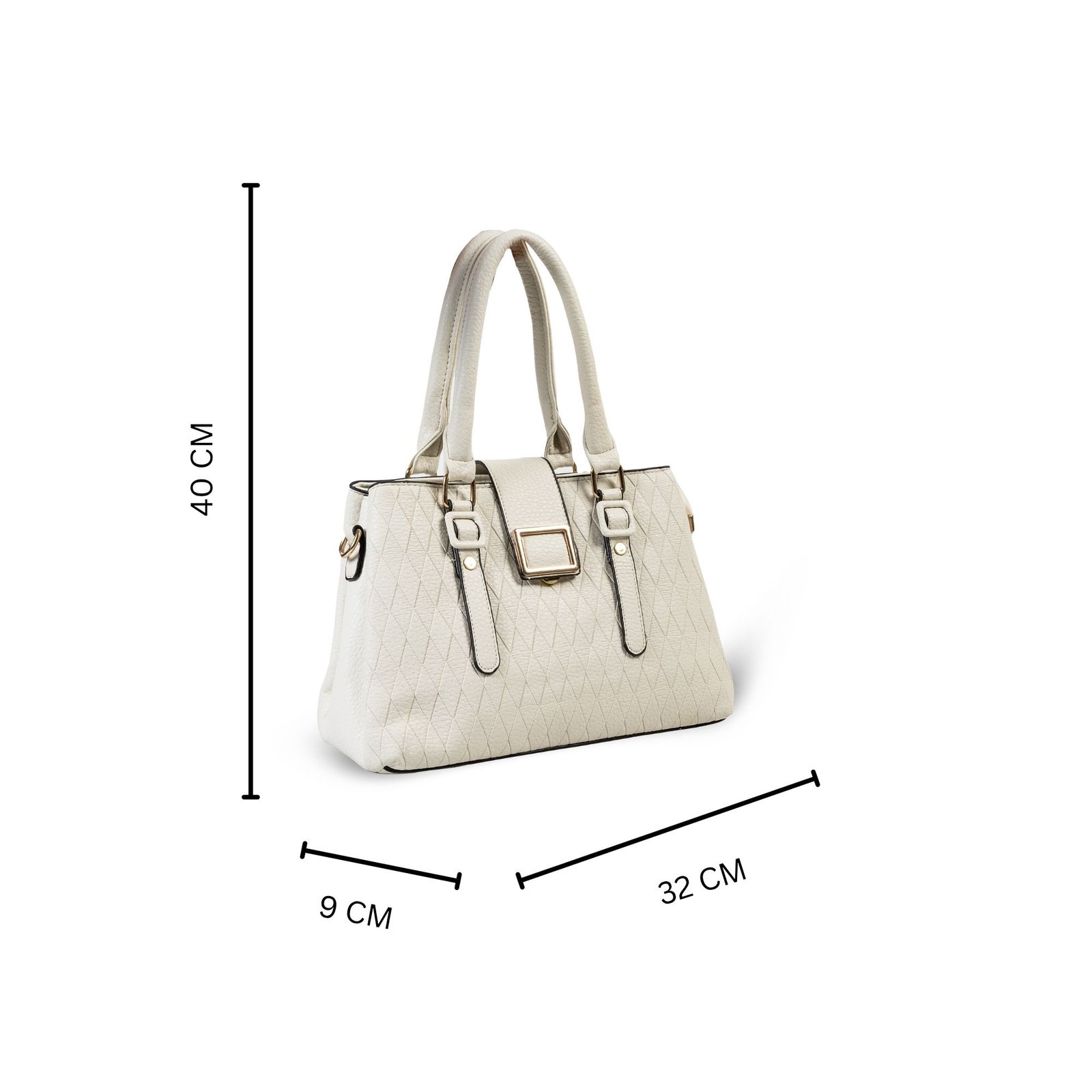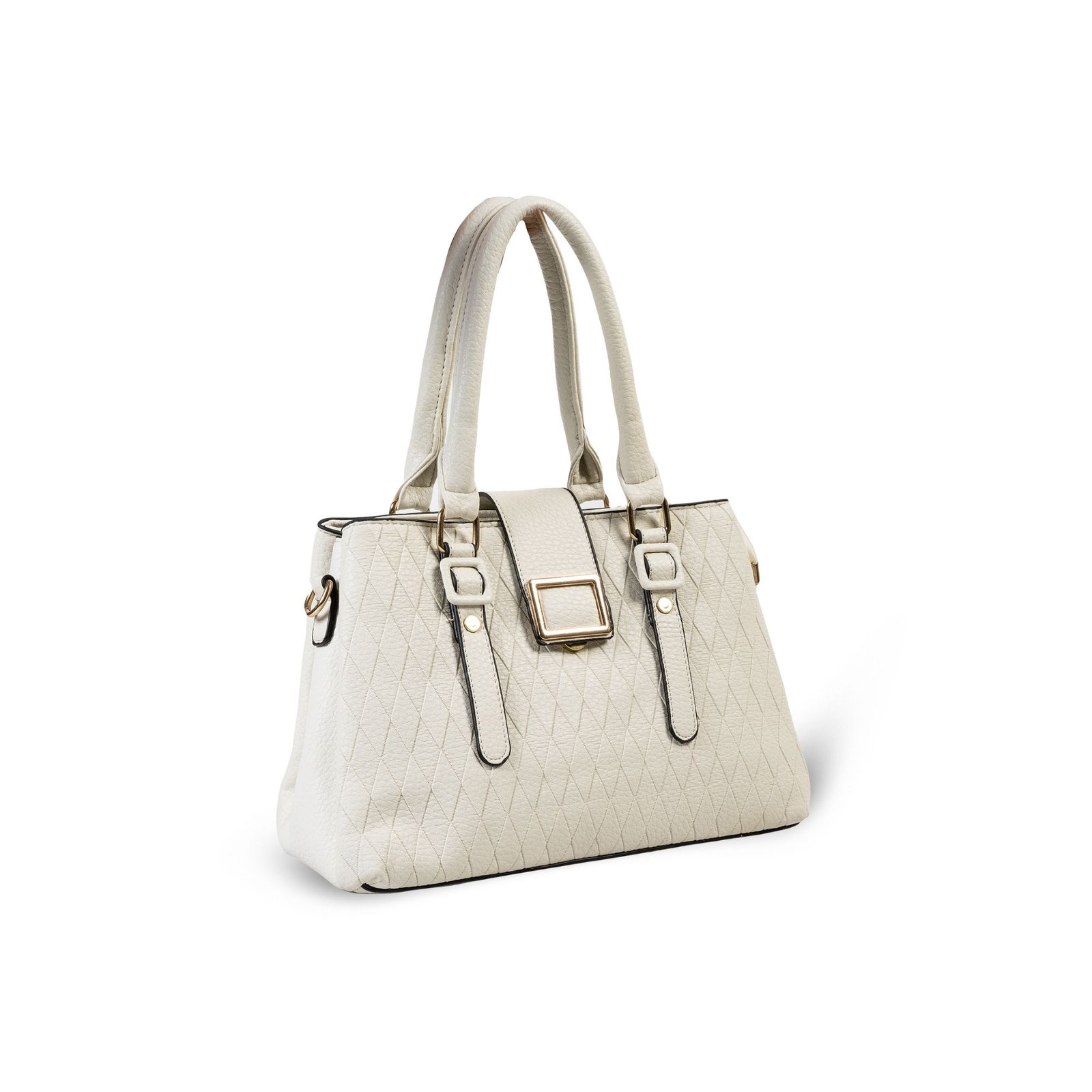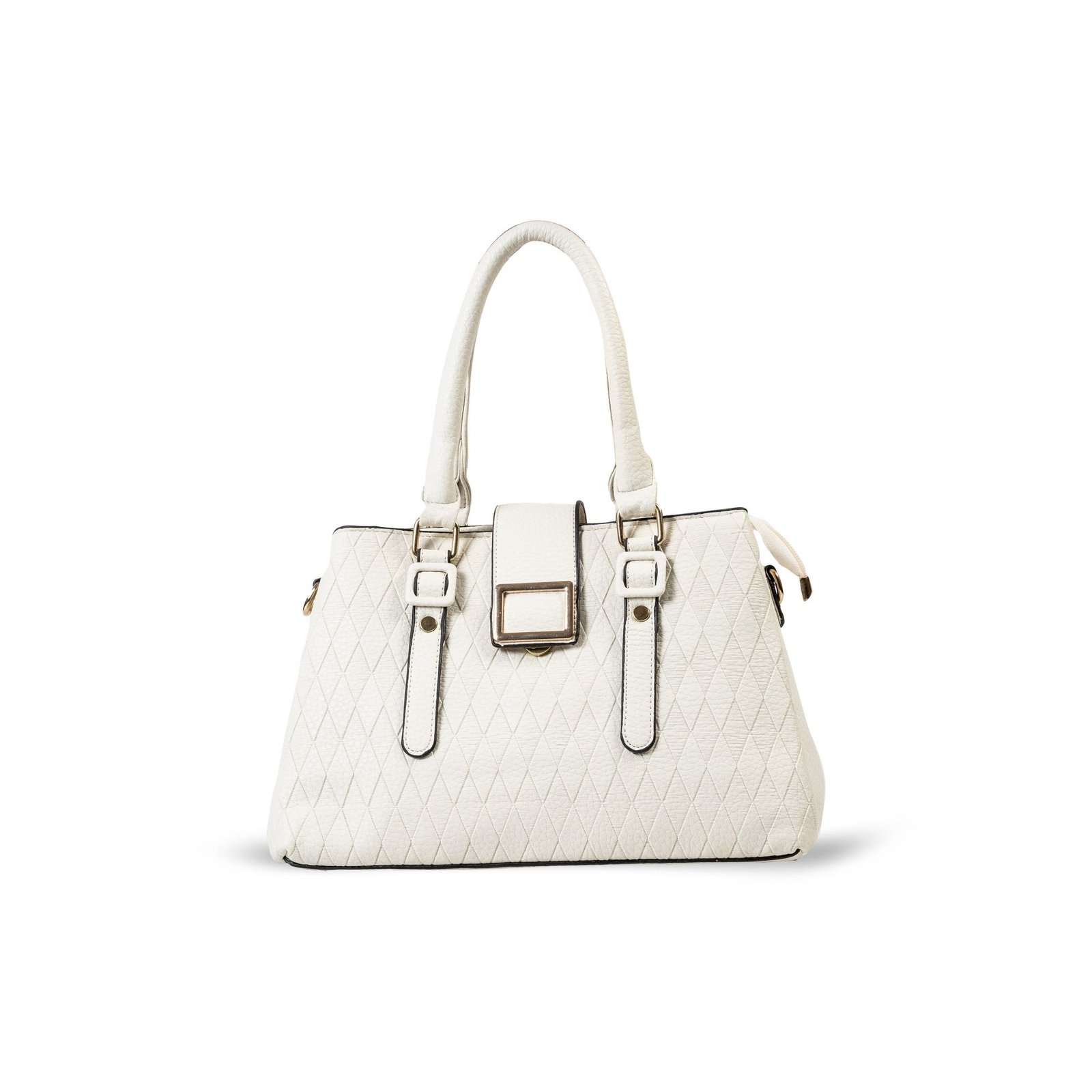 FIRSTGLOW Luxe Quilted Leatherette Handbag with Dual Handle Design – Ivory Pearl Finish