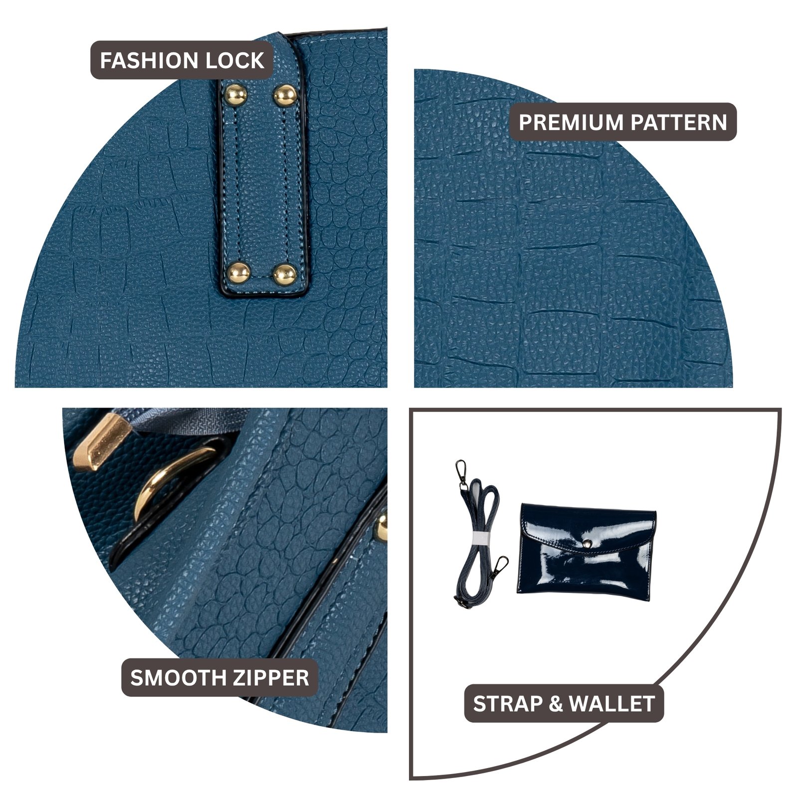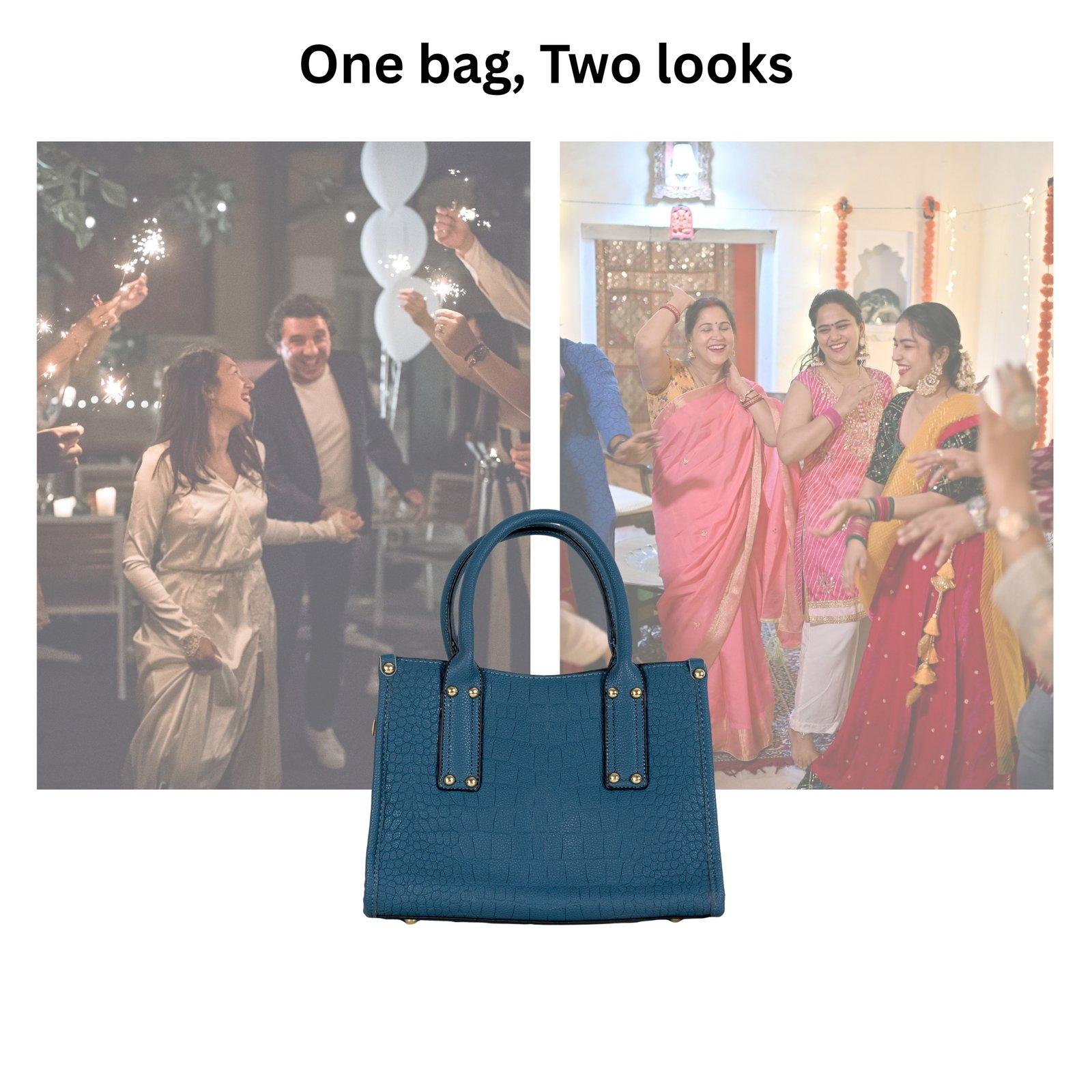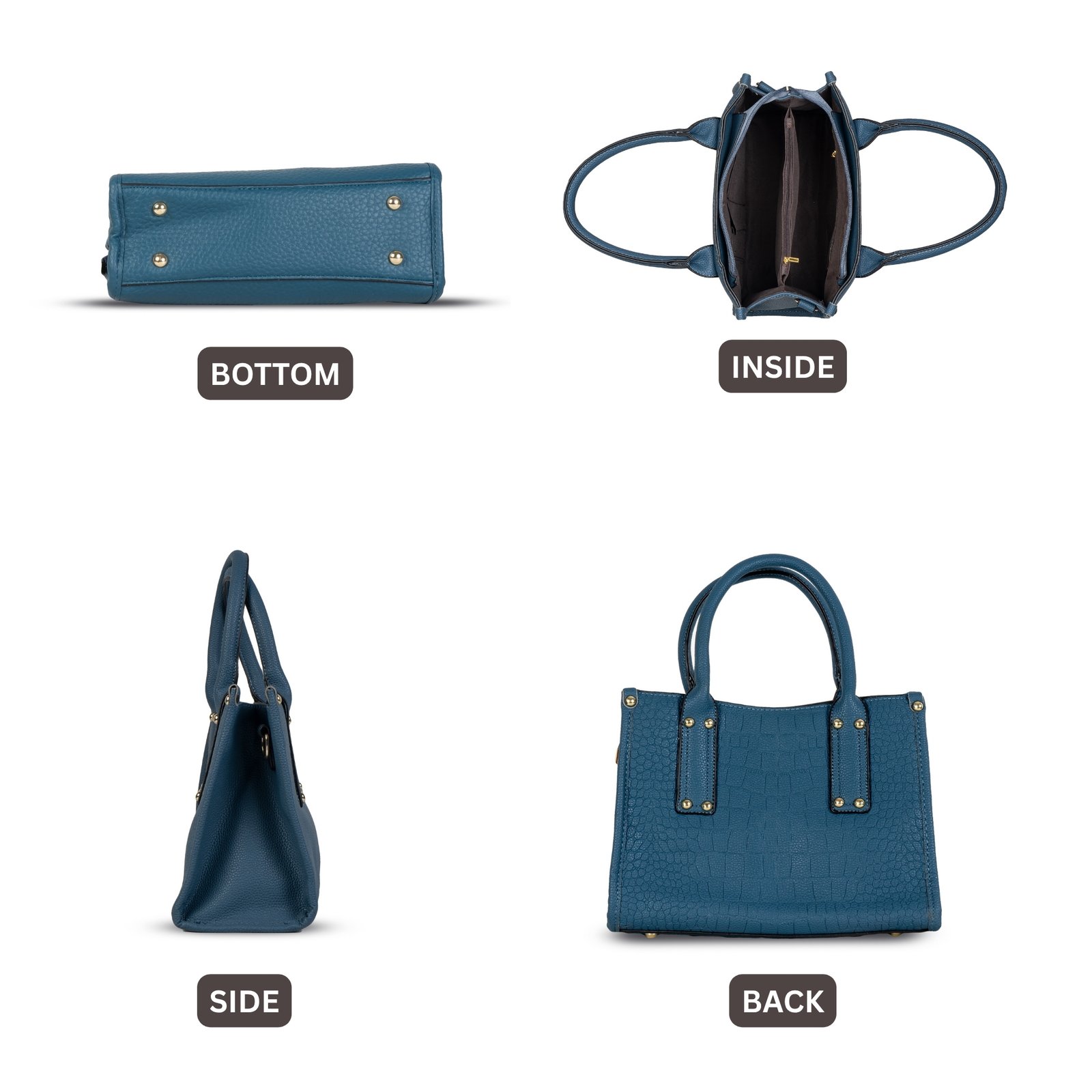FIRSTGLOW Premium Croc-Textured Structured Handbag – Teal Blue