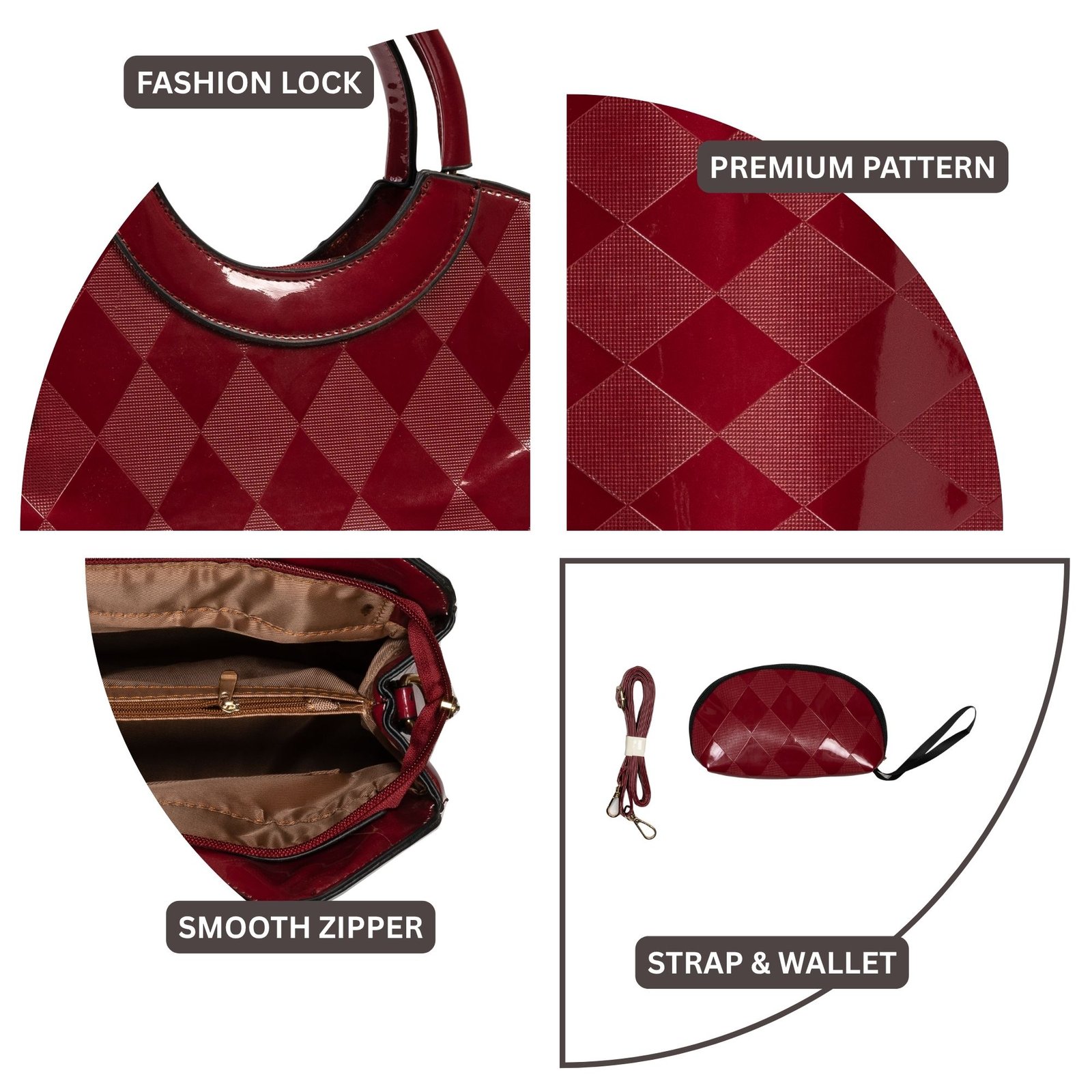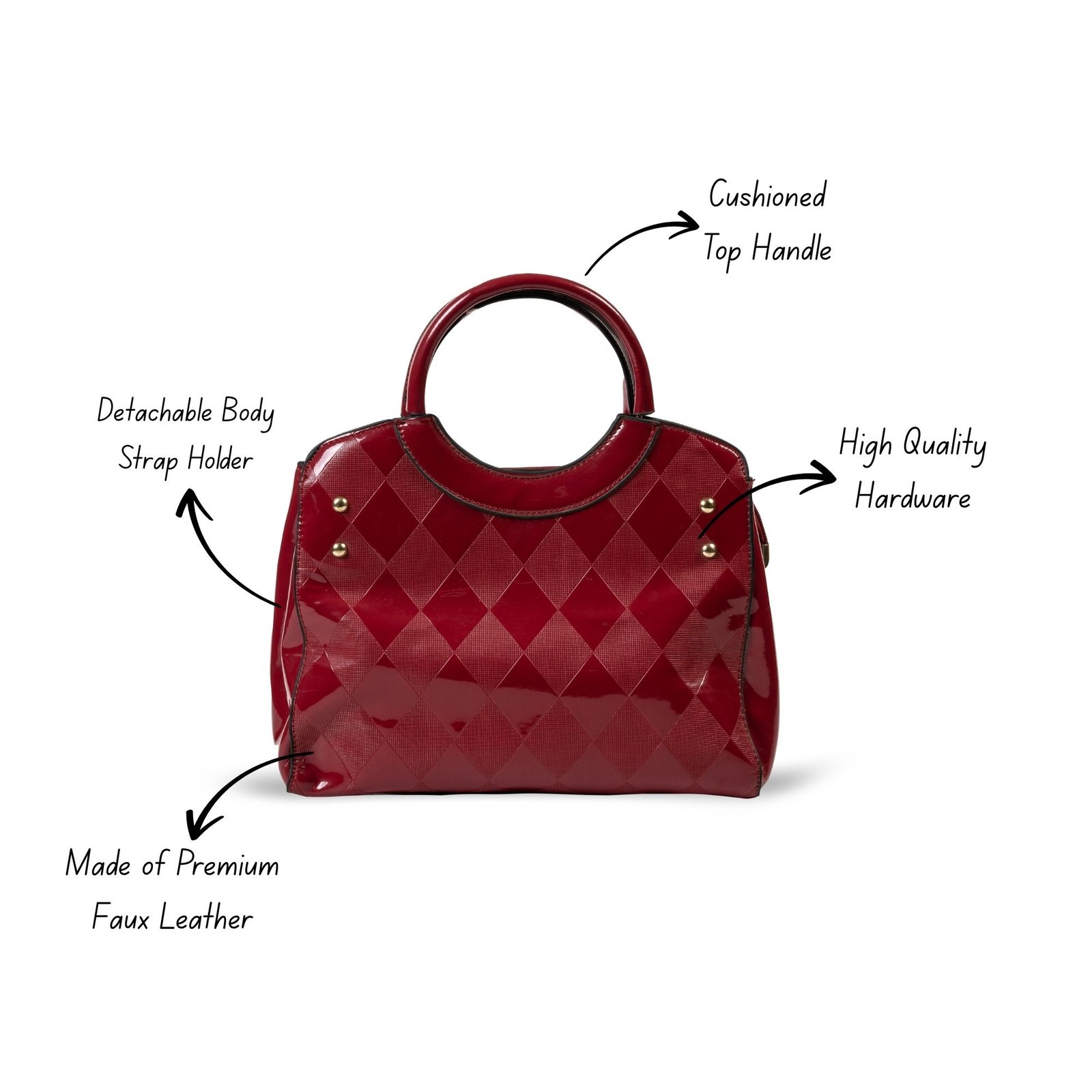 FIRSTGLOW Premium Textured Leatherette Handbag with Dual Handles – Royal Wine Maroon