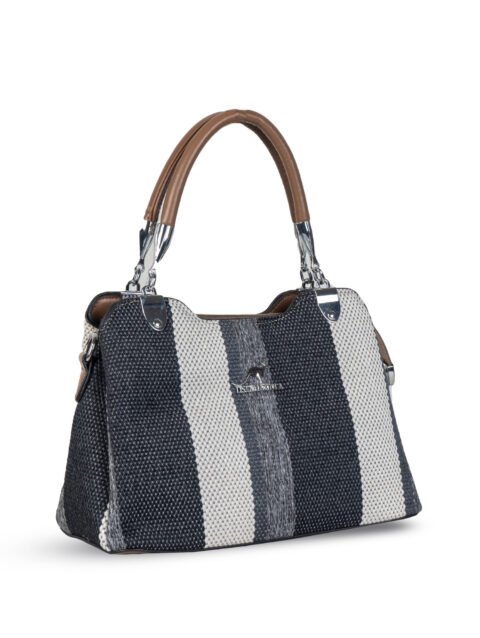 FIRSTGLOW Classic Striped Fabric Handbag with Dual Tone Handles – Black & White