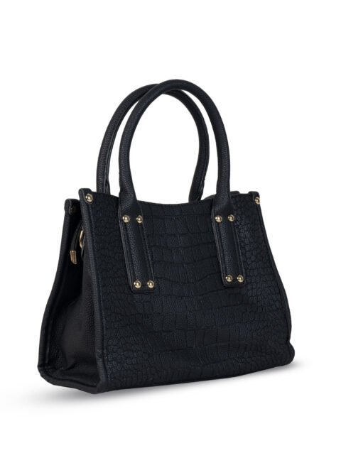 FIRSTGLOW Luxe Croc-Textured Structured Handbag – Classic Black
