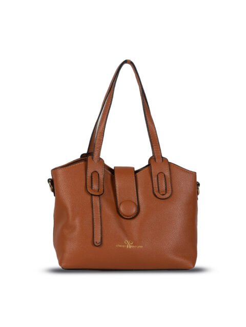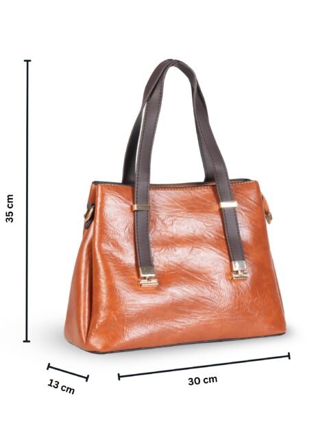 FIRSTGLOW Elegant Textured Leatherette Handbag with Dual Handles – Classic Caramel Tan